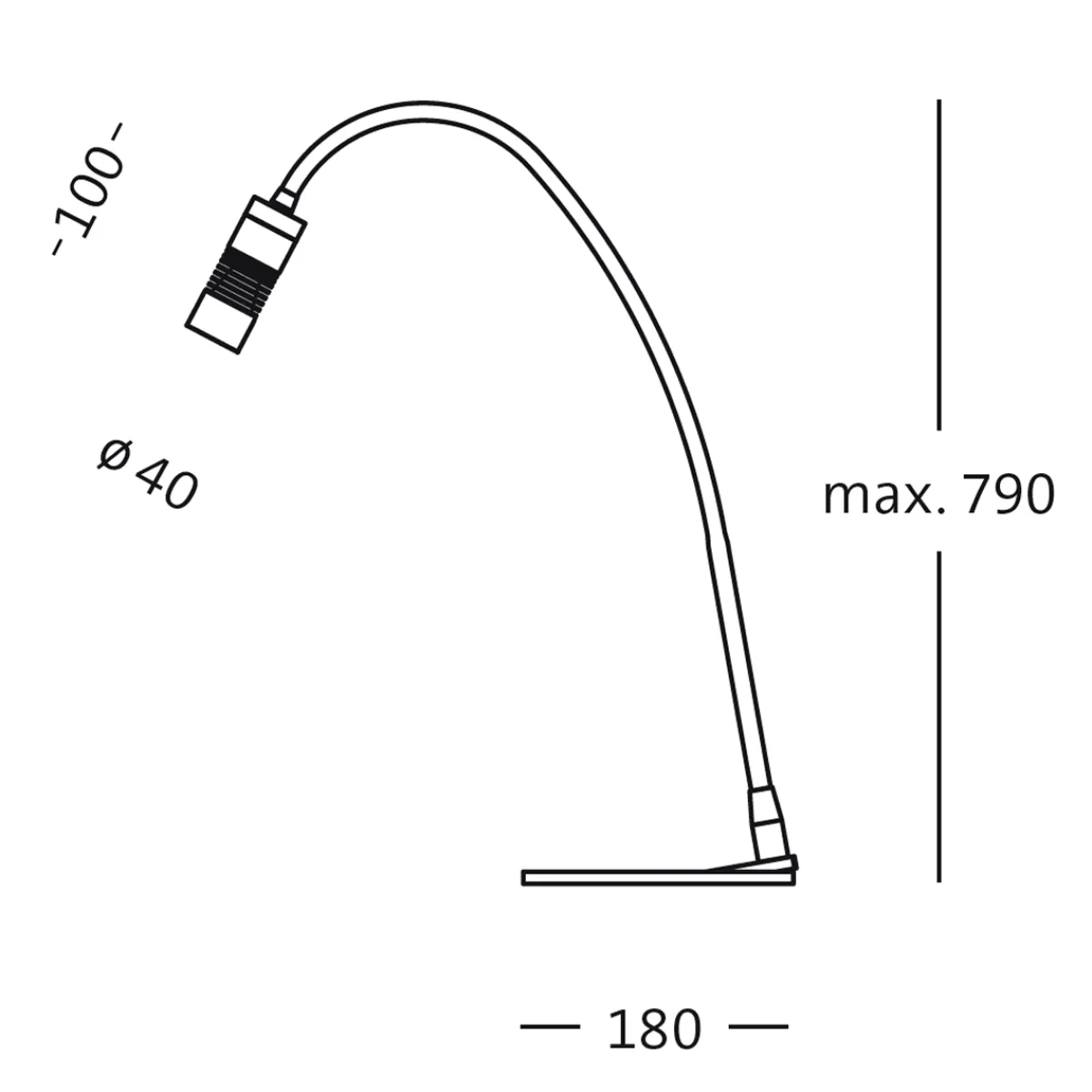 | Material/Oberfläche: | Alu poliert / schwarz eloxiert, Flexarm: Textilüberzug, Zuleitung: schwarz matt |