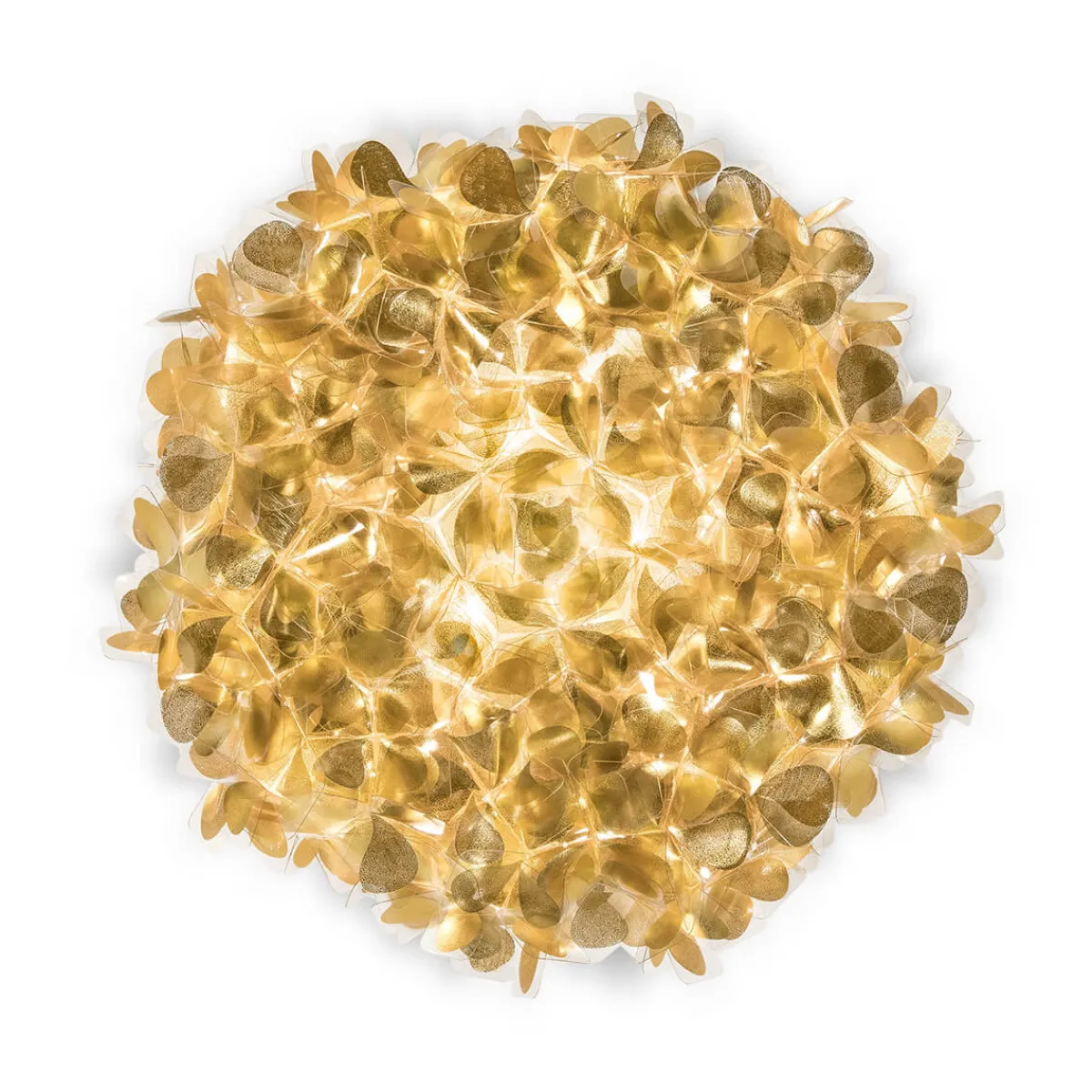 Kernpunkt des Designs von Adriano Rachele ist der Leuchtenschirm, der aus zahlreichen, von Hand zusammengesteckten Blättchen aus Cristalflex®, einem widerstandsfähigen, hochwertigen Kunststoff, besteht. Das Ergebnis ist ein leuchtendes Bouquet, das Ihren Räumen eine ausgewogene Schönheit verleiht. In der Hommage an Freude und die Reinheit der Gefühle liegt die besondere Kraft dieser .