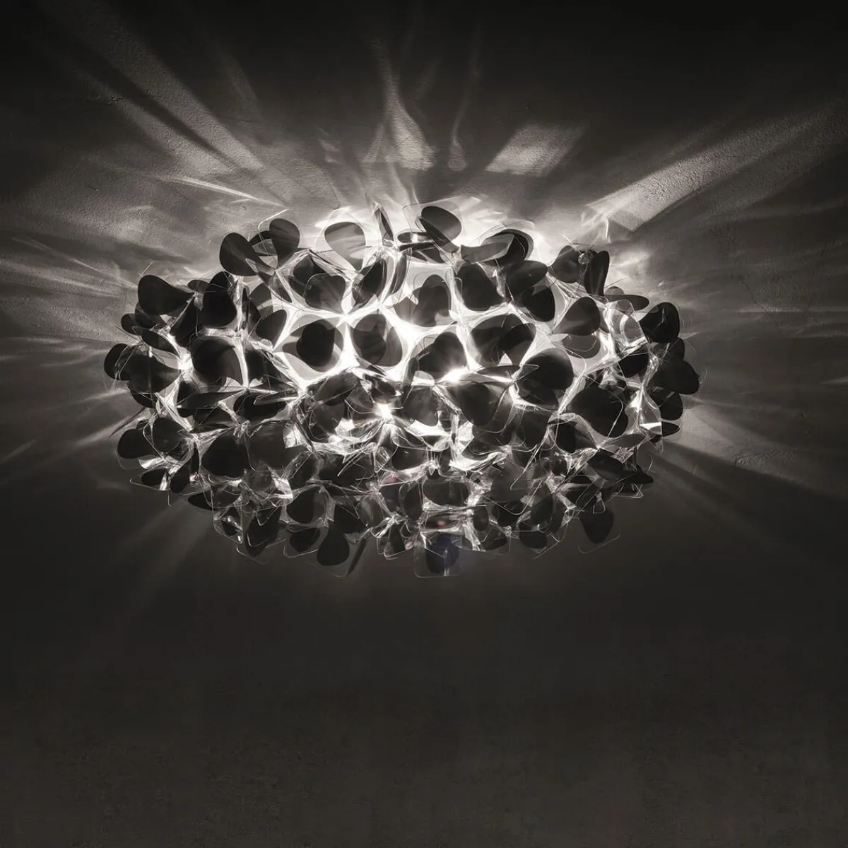 Fügen Sie Ihrer Einrichtung eine visuell beeindruckende Lichtquelle hinzu – mit der Clizia Mama non Mama Ceiling / Wall Large von Slamp. Inspiriert von der Schönheit der Natur, präsentiert sich diese Wand- und Deckenleuchte in einer bezaubernden, floral anmutenden Form. Sie erzeugt ein harmonisches Raumlicht, das die Atmosphäre eines jeden Zimmers bereichert.