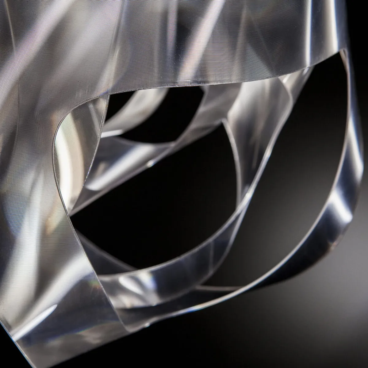 Ihre besondere Wirkkraft verdankt die Slamp Goccia Pendelleuchte ihrem tropfenförmigen Leuchtenschirm, der aus geschwungenen Schichten aus Kunststoff besteht. Hierbei handelt es sich um Lentiflex®, einen von Slamp patentierten, bruchfesten Kunststoff, der mit seiner prismenhaften Oberfläche spektakuläre, kaleidoskopartige Lichtreflexe erzeugt. Dies macht die zu einem fesselnden Lichtobjekt, das mit seinem frischem Design begeistert.