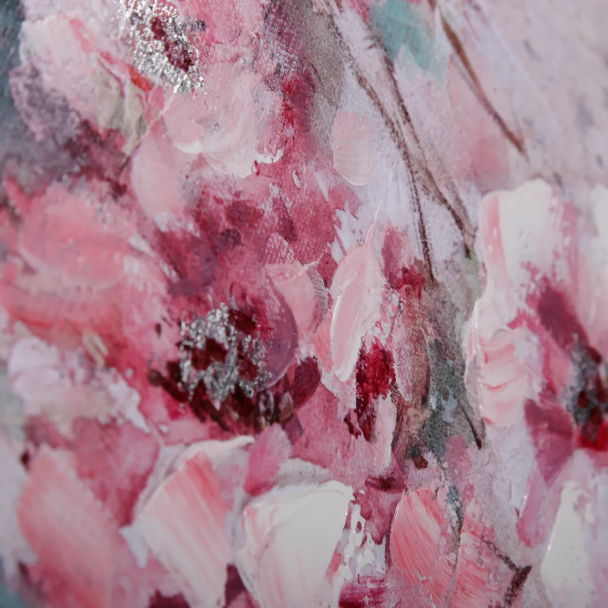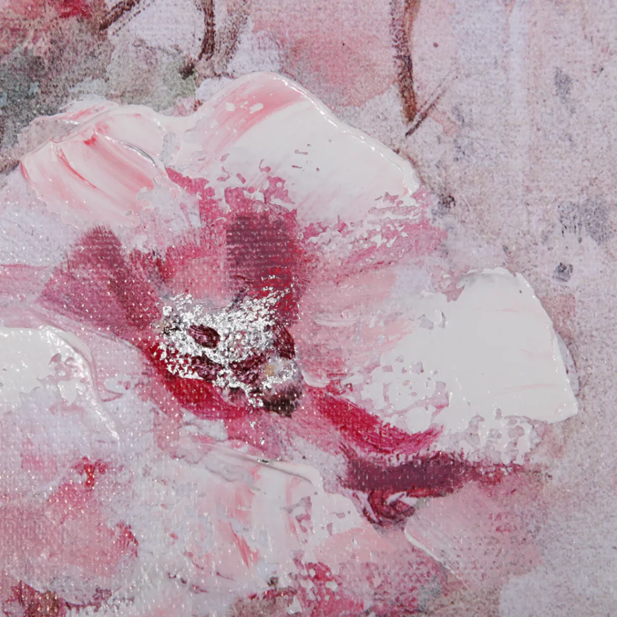 - Ölgemälde mit Kirschblüten und silberfarbenen Akzenten