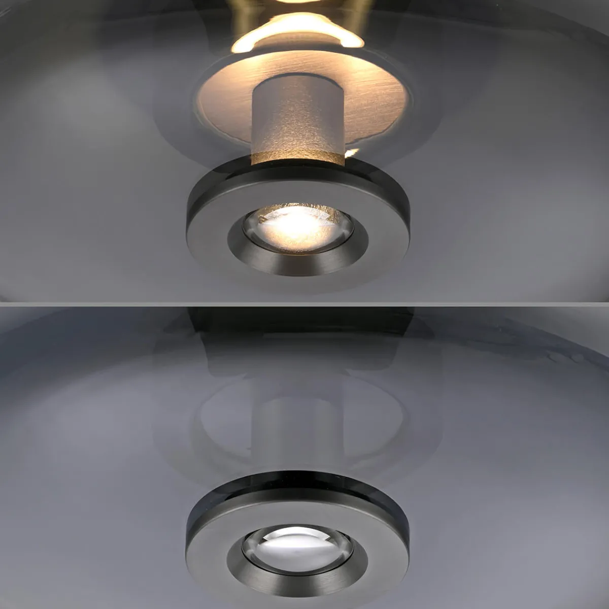 Ein besonderes Highlight ist die ausgeklügelte : Der Glasschirm erstrahlt von innen her und erzeugt so ein sanftes, diffuses Grundlicht, während das Spotlight an der Unterseite ein nach unten gerichtetes Funktionslicht schafft. Diese intelligente Kombination sorgt für eine angenehme Raumbeleuchtung und setzt gezielte Lichtakzente.