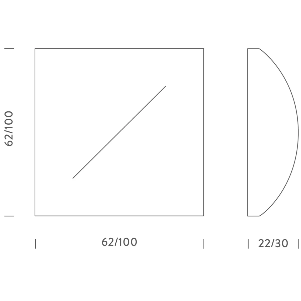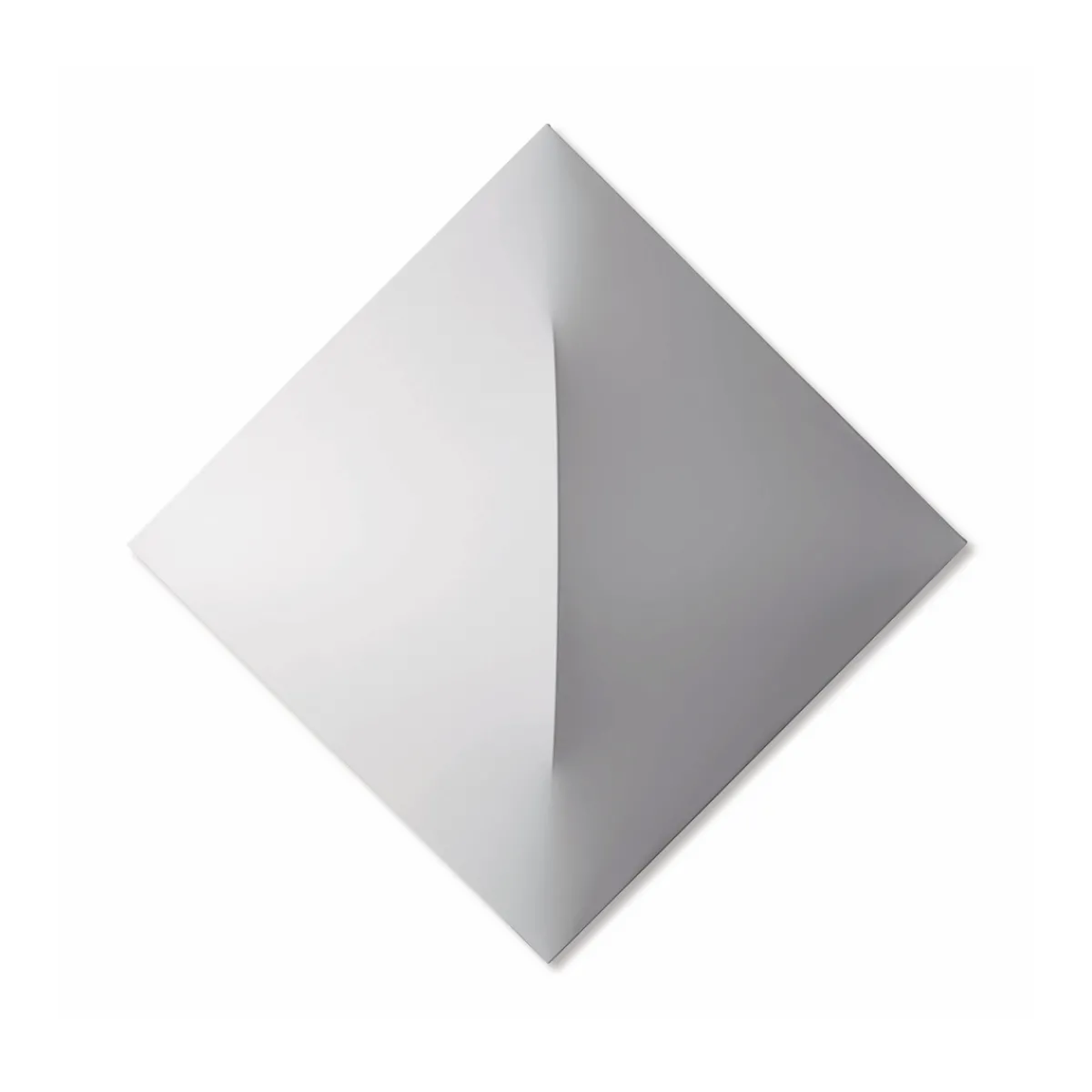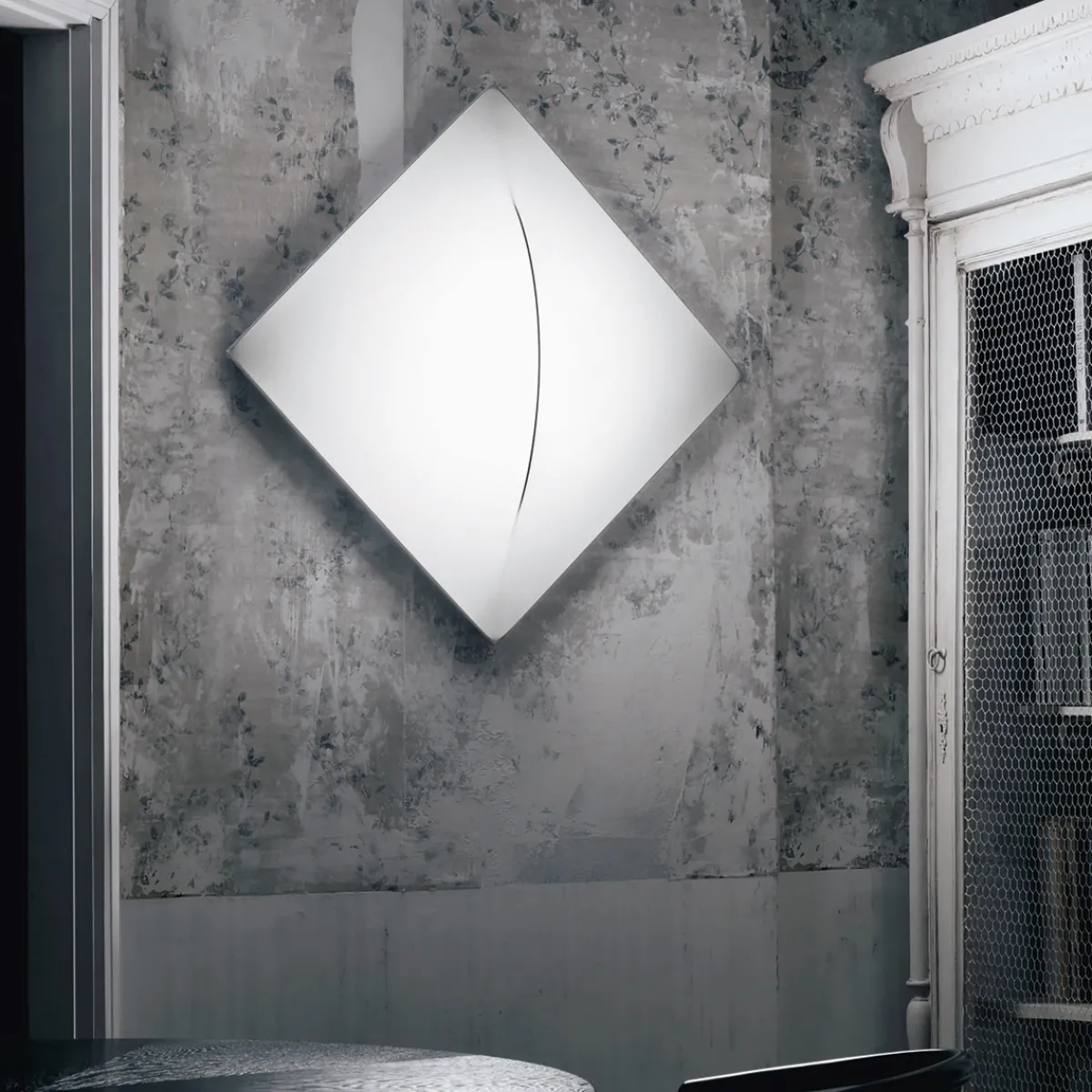 Der besondere Reiz der Nemo Saori Parete: Der Leuchtenkörper besteht aus einer Struktur aus weiß lackiertem Aluminium, über die ein Bezug aus weißem Textilstretch gespannt ist. Dieser fungiert als Leuchtenschirm und gewährleistet eine diffus gestreute Lichtausstrahlung. Ein ästhetisch reizvolles Detail repräsentiert die durch die Metallstruktur erzeugte diagonale Erhebung im Zentrum der Nemo Saori Parete Wandleuchte.
