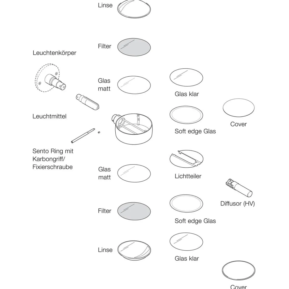 - Kombinierbar mit Sento Farbfiltern, soft edge Glas und Glas matt