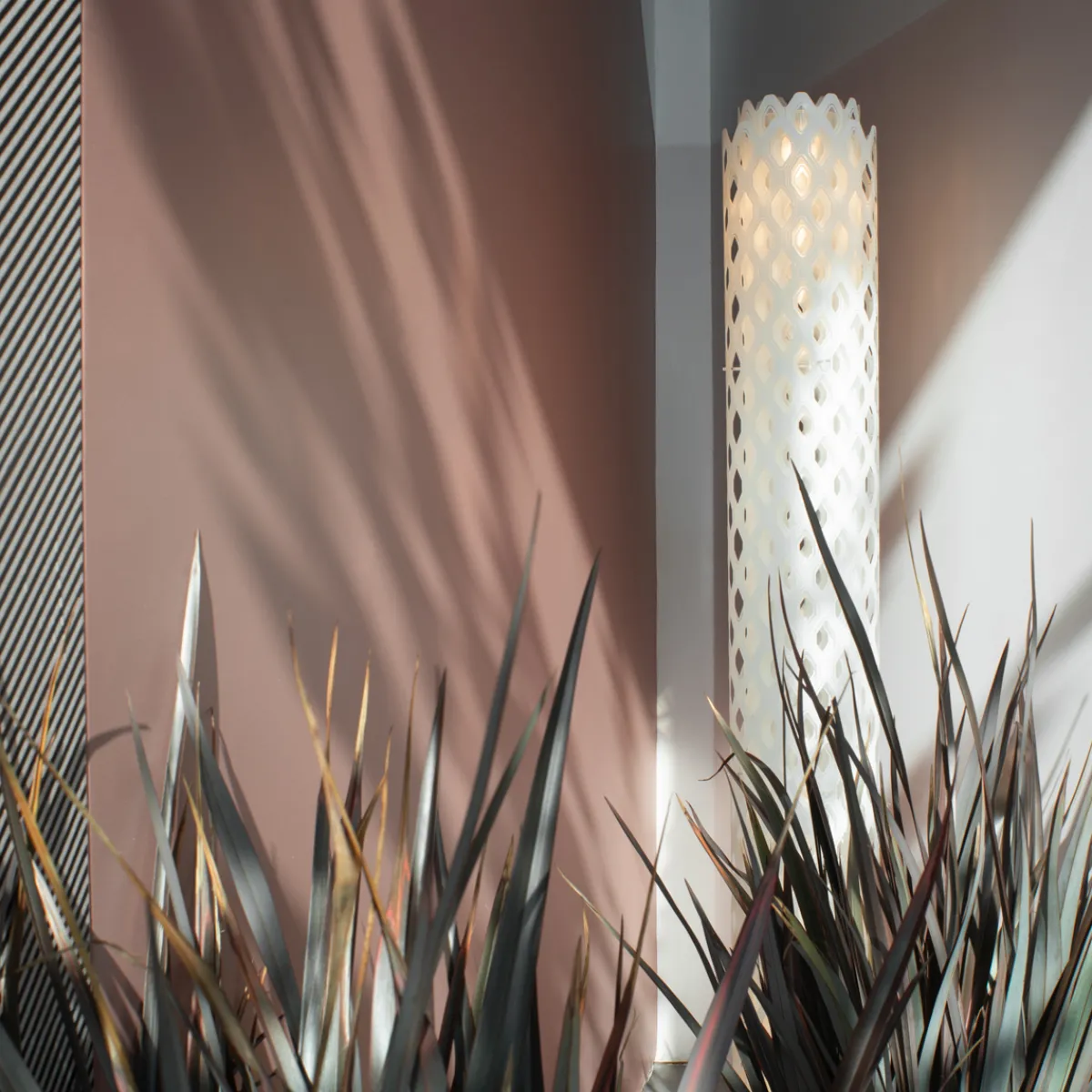 - Skulpturale Stehleuchte in Gestalt einer schlanken Lichtsäule