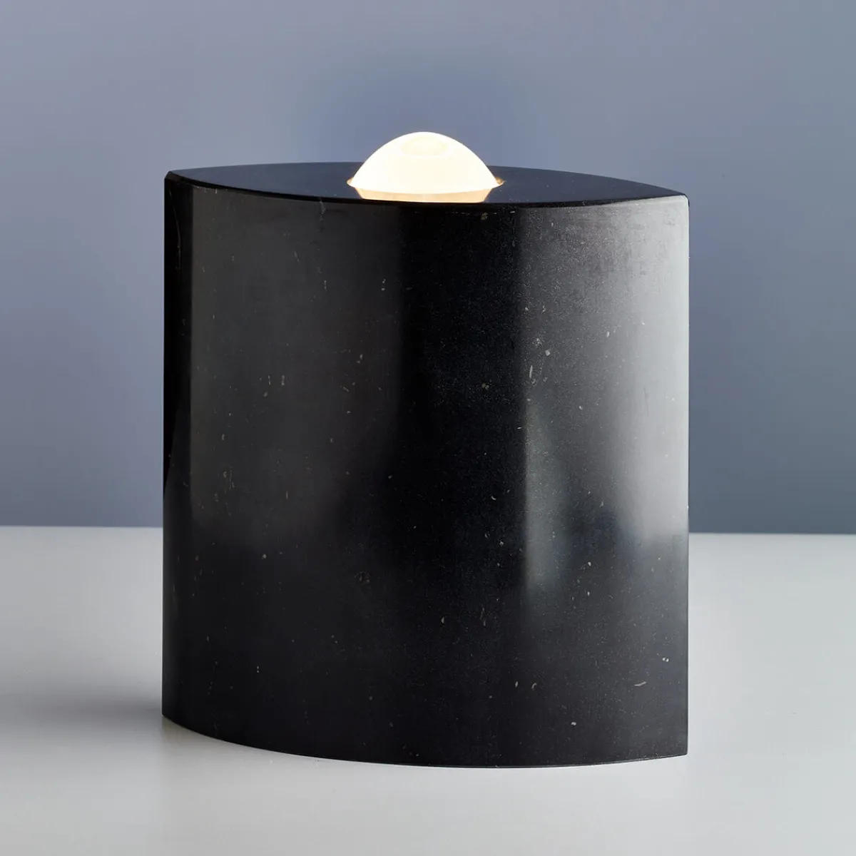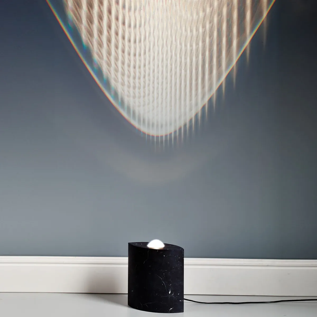 - Monolithisch wirkende Bodenleuchte aus italienischem Carrara-Mamor