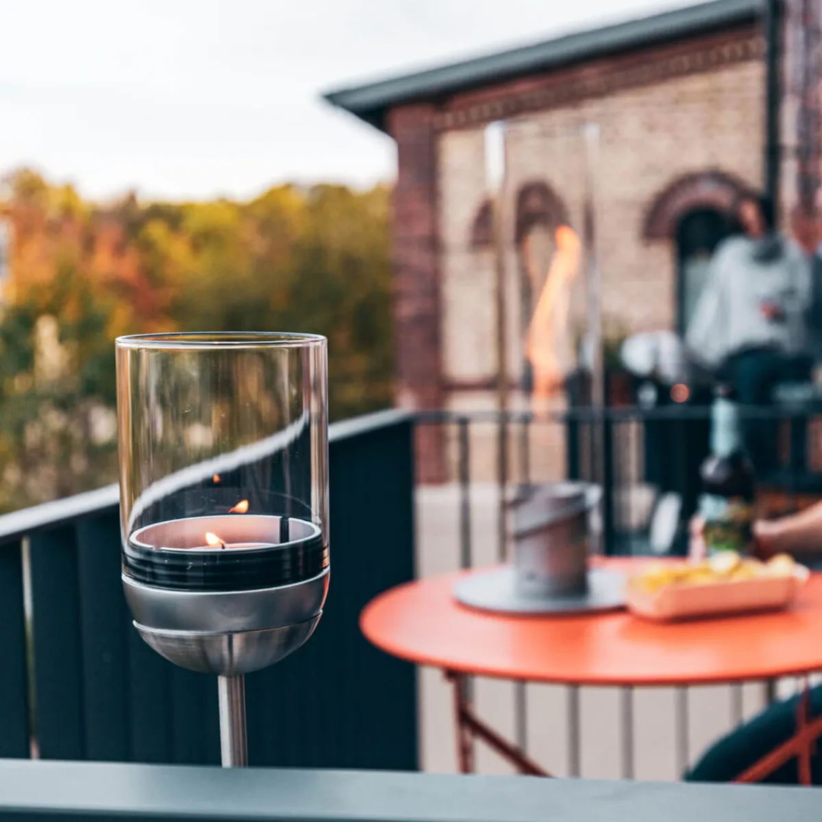 Das Windlicht selbst wird einfach auf die Schale gesetzt. Auch in dieser Position kann die Kerze umgedreht werden, um sie zum Erlöschen zu bringen und vor Witterung zu schützen. Das höfats Gravity Candle Windlicht können Sie ebenso wie den passenden Fuß als Zubehör in unserem Shop erwerben.