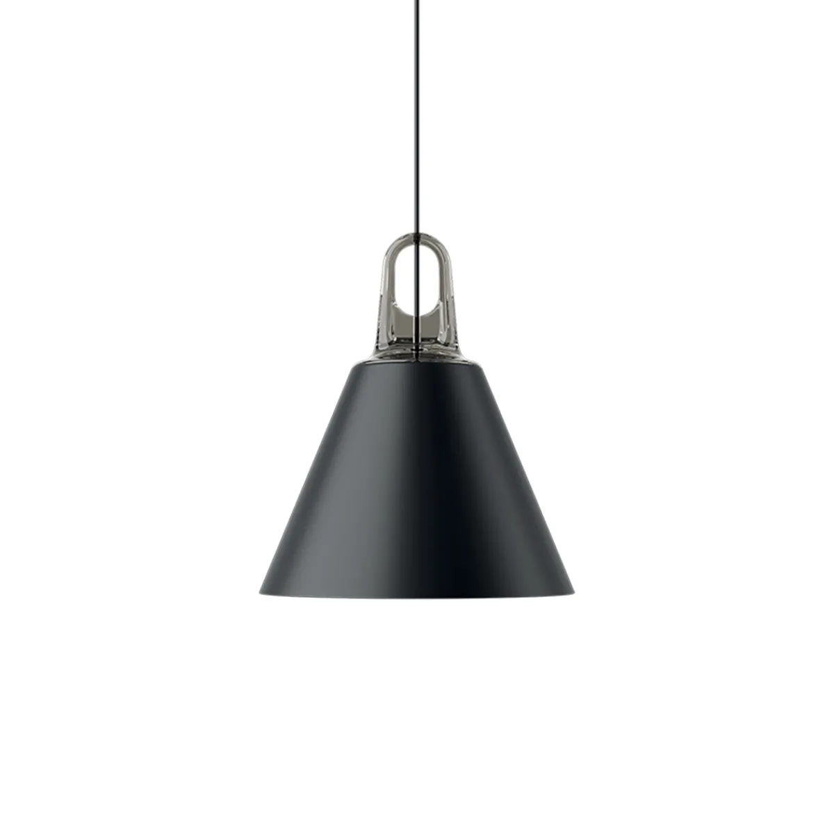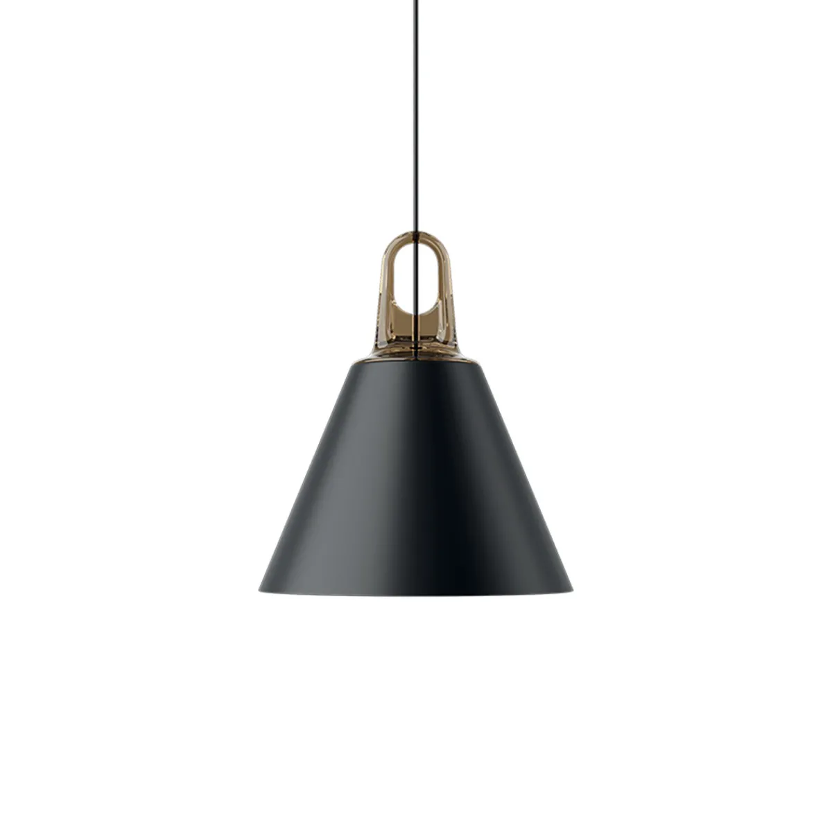 Die Lodes Jim Cone Pendelleuchte wird mit einem weißen Baldachin geliefert. Ausführungen mit einem Baldachin in Schwarz matt, Bronze matt, Chrom oder Champagner matt sind auf Anfrage erhältlich.