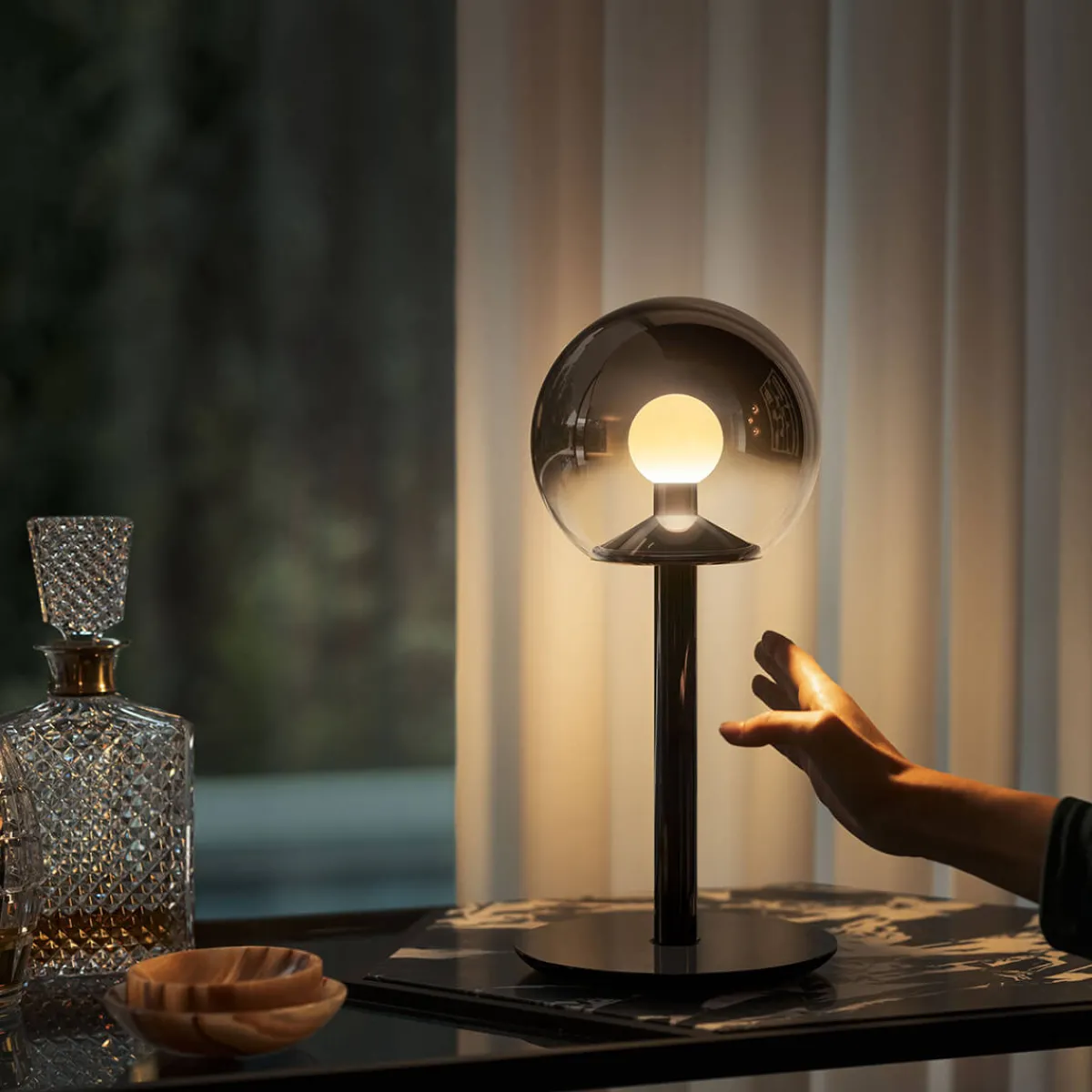 - Design-Tischlampe mit kugelförmigem Glasschirm