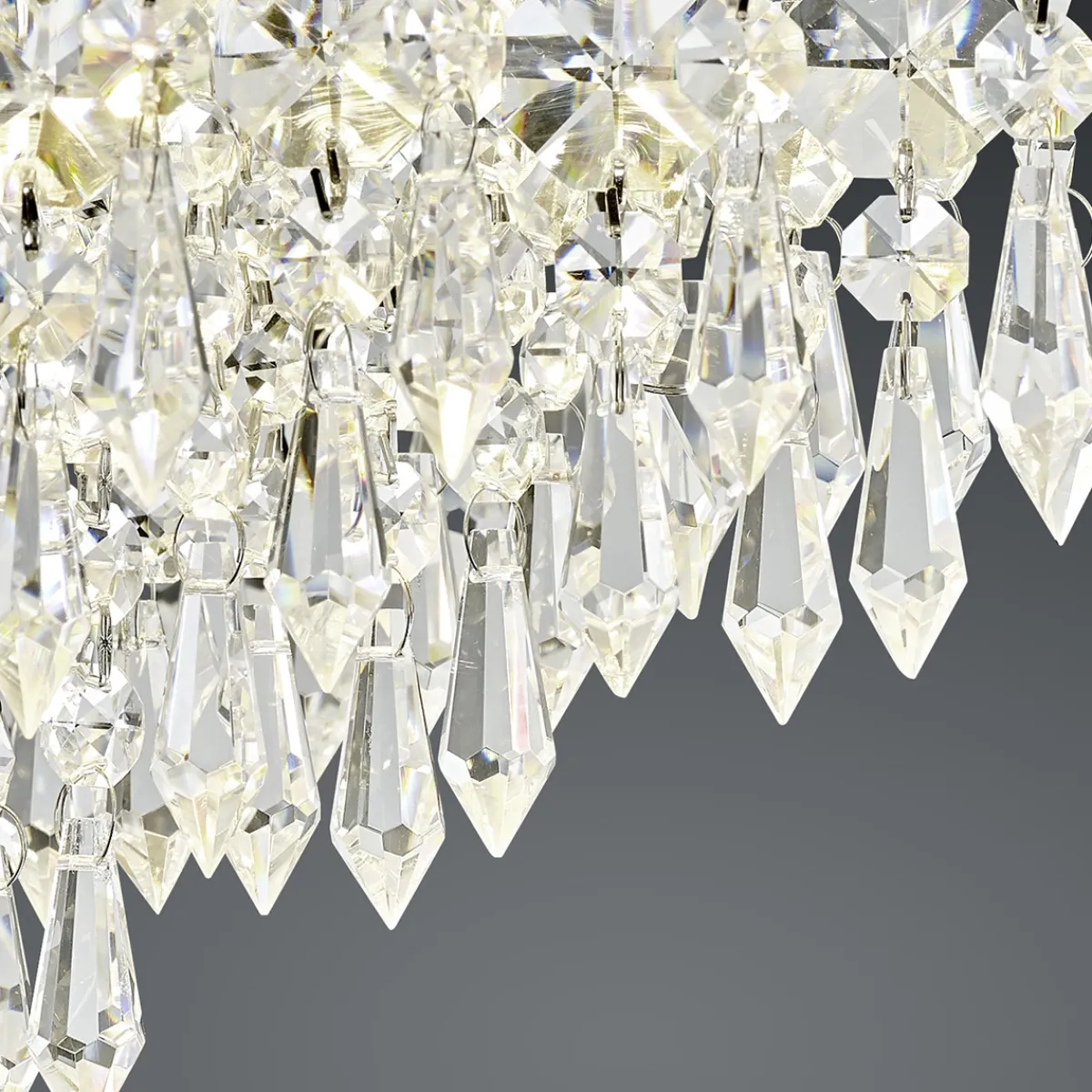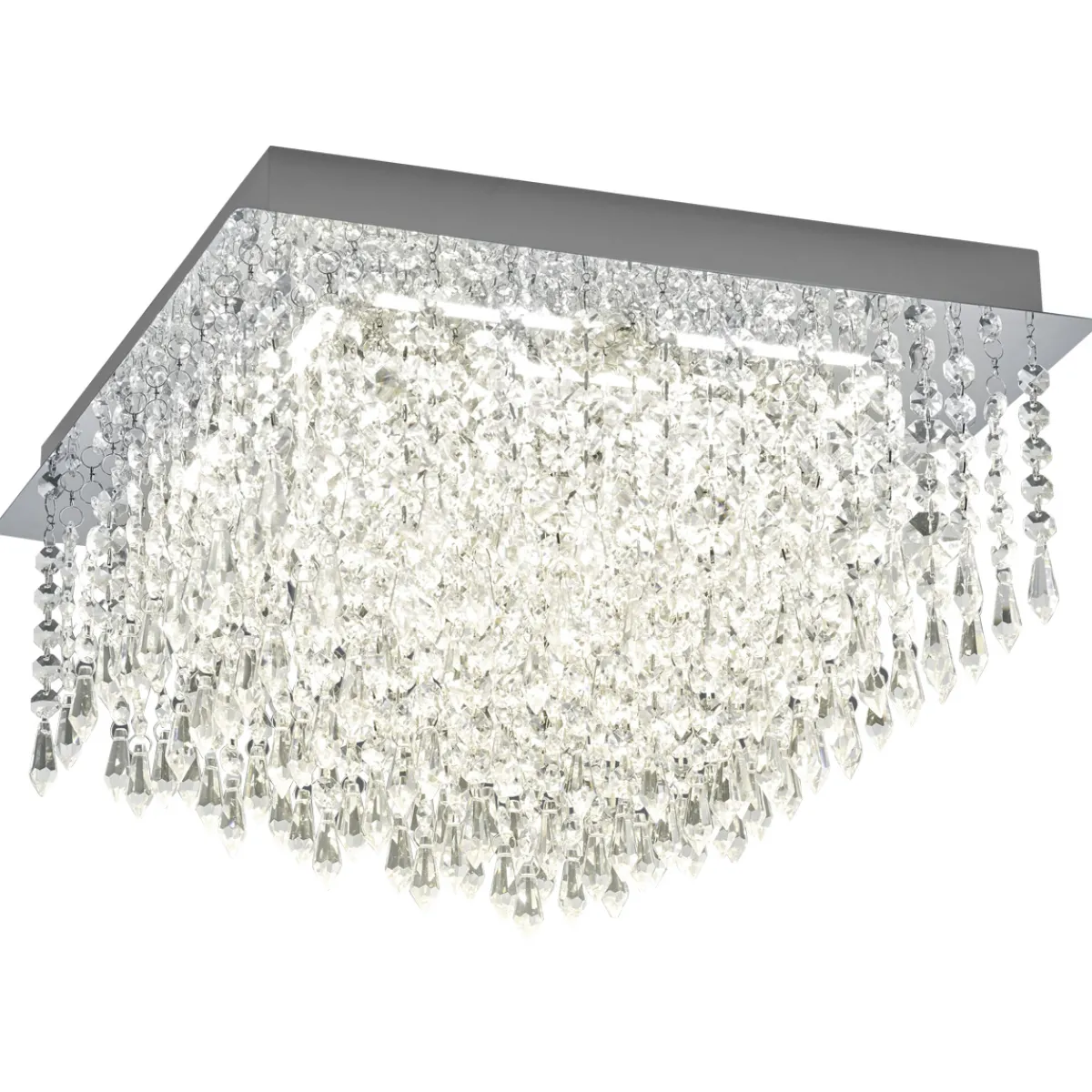 Die glanzvolle Palace LED Deckenleuchte kombiniert ein edles Design mit modernster Lichttechnologie. Die LED- wird über die mitgelieferte B-Link Fernbedienung gedimmt, die mit bis zu neun weiteren Empfängern verbunden werden kann. Die Fernbedienung können Sie frei bedienen oder auch an einer Wand oder auf dem Mobiliar befestigen. Für effektvolle Lichtreflexe und eine luxuriös anmutende Ästhetik sorgt der kristallähnliche Behang der Deckenleuchte. Bitte beachten Sie, dass das Produkt nicht mit einem Wanddimmer kombiniert werden darf.