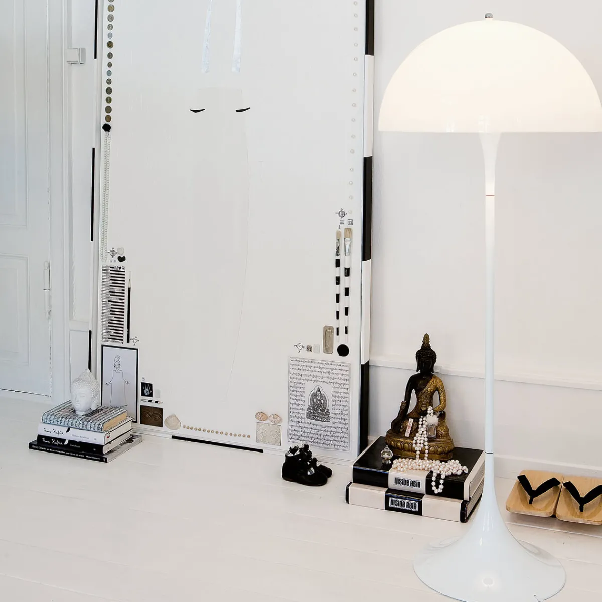 Egal, ob Sie ein einladendes Ambiente in Ihrem Wohnzimmer schaffen oder Ihrem Schlafbereich eine stilvolle, funktionale Lichtquelle hinzufügen möchten, die Panthella Stehleuchte erfüllt Ihre Anforderungen mit Leichtigkeit und Eleganz. Durch das diffuse, blendfreie Licht eignet sie sich hervorragend als Hintergrundbeleuchtung für Ihre Wohnkultur oder als Statement-Piece in einem minimalistischen Raum. Die organische Form und das sanfte Licht machen die Stehlampe zu einer zeitlosen Wahl für jede Einrichtung.