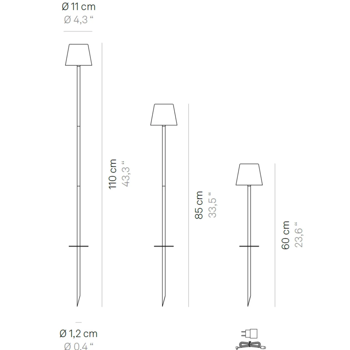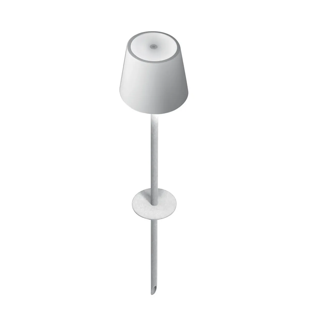 Die Zafferano Poldina Picchetto ist eine wiederaufladbare Akkulampe, die – da mit einem Erdspieß ausgestattet – in Blumenbeeten, Grünflächen und Blumentöpfen platziert werden kann. Zur Verlängerung des Leuchtenschafts sind optionale Verlängerungsstäbe von je 25 cm in unserem Onlineshop erhältlich. Um die zu laden, wird einfach der magnetische Leuchtenkopf abgenommen und auf die mitgelieferte Ladestation gesetzt.
