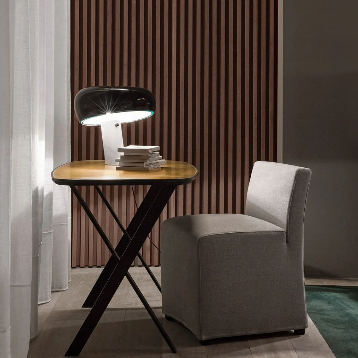 Mit ihrer gerichteten Lichtausstrahlung eignet sich die Snoopy ideal als Akzentlicht auf Sideboards, Beistelltischen und Schreibtischen. Sie schafft ein angenehmes, blendfreies Licht, das für eine warme und einladende Atmosphäre sorgt – sei es im Wohnzimmer, im Schlafzimmer oder in exklusiven Hotel- und Lounge-Bereichen. Durch ihre ikonische Form zieht sie alle Blicke auf sich und wird zum stilvollen Blickfang jeder Einrichtung.