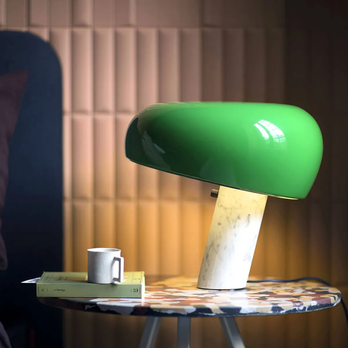 Flos Snoopy Tischleuchte: charmante Designikone mit edlem Marmorsockel