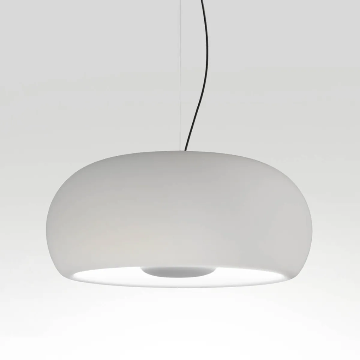 - Schönlinige Pendellampe mit geblasenem Kristallglasschirm