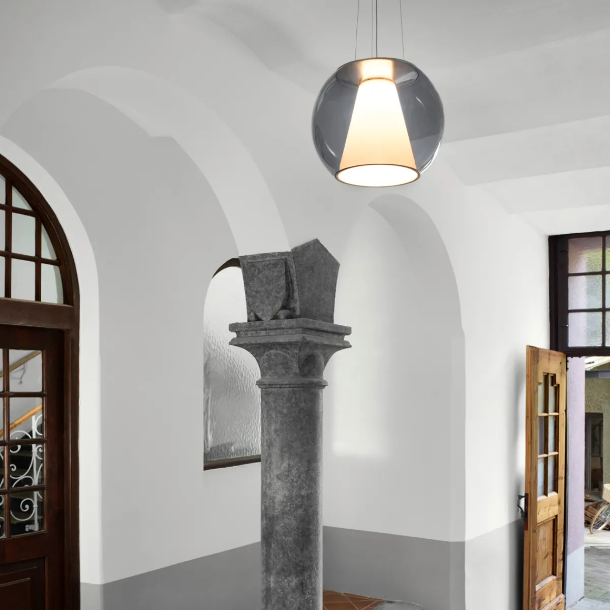 - Mit kugelförmigem Leuchtenschirm aus mundgeblasenem Glas
