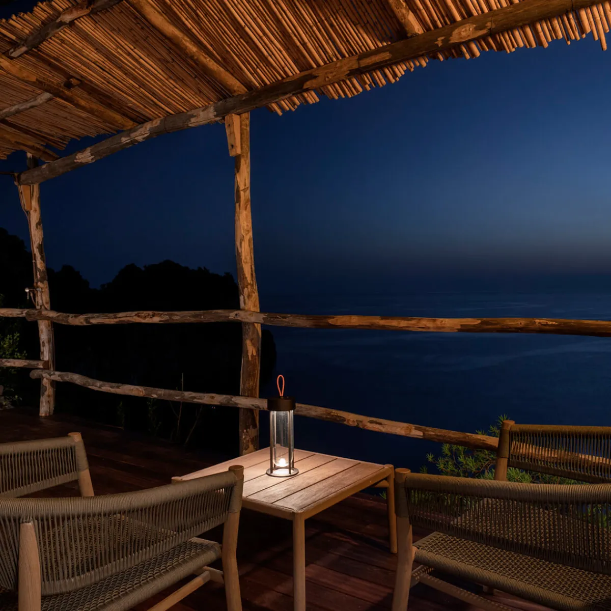 Outdoor-taugliche Akku-Tischlampe mit stilvoller Note