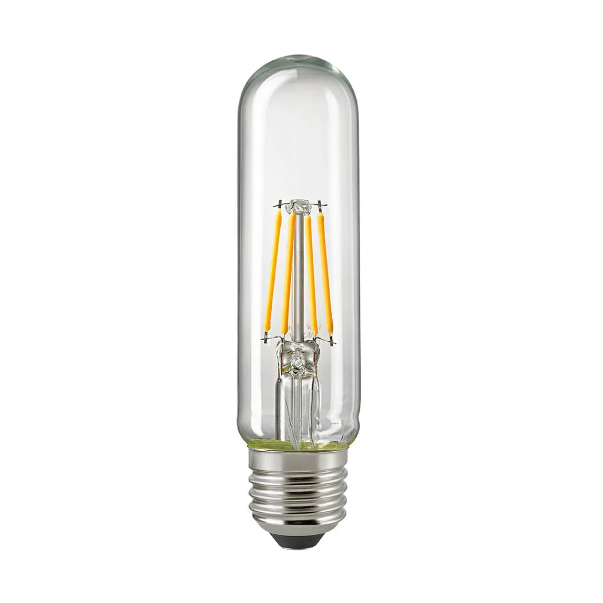 - Kompakte, röhrenförmige LED-Filamentlampe mit klarem Glaskolben