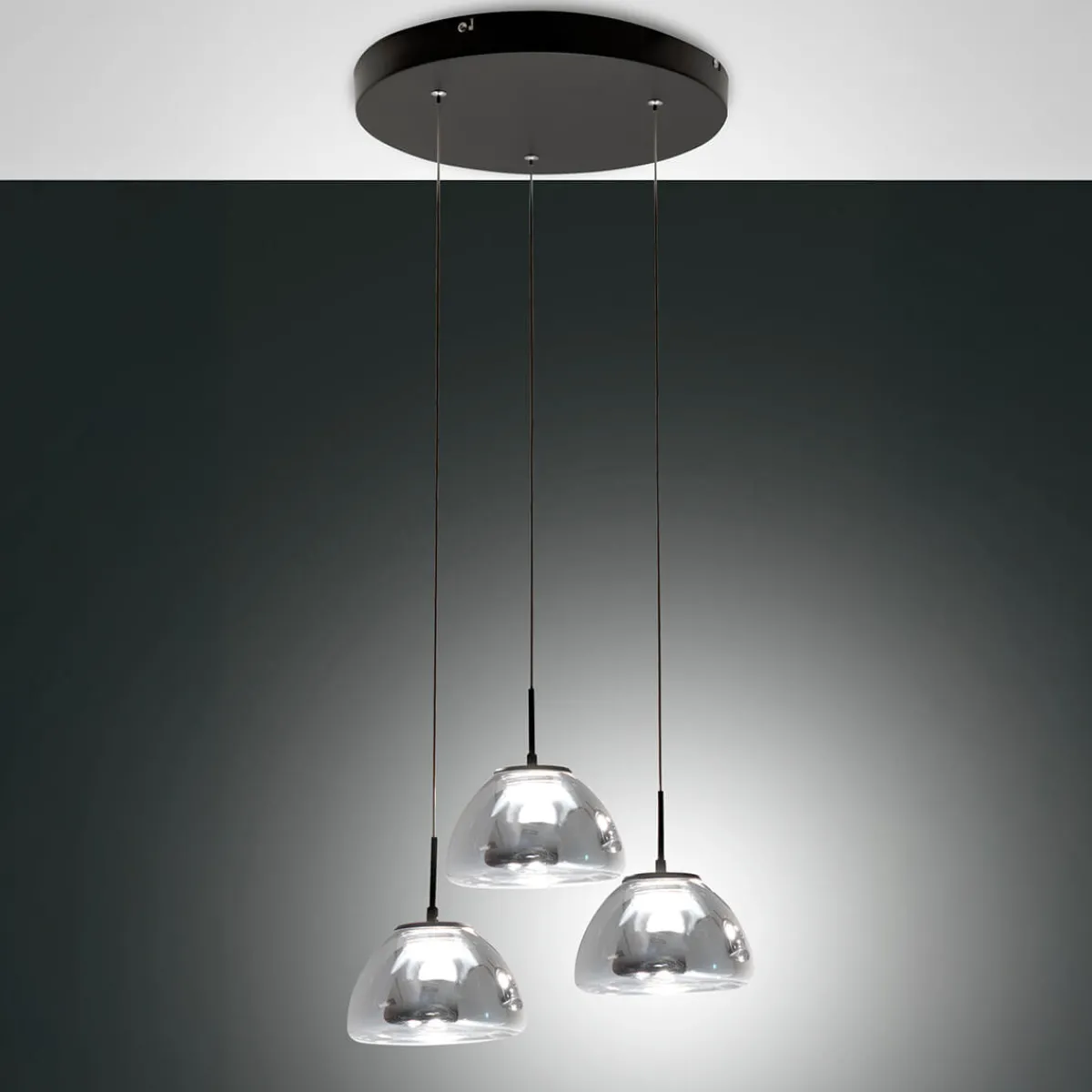 - Hängeleuchte mit 3 dekorativen Borosilikatgläsern und schwarzem Rondell-Baldachin