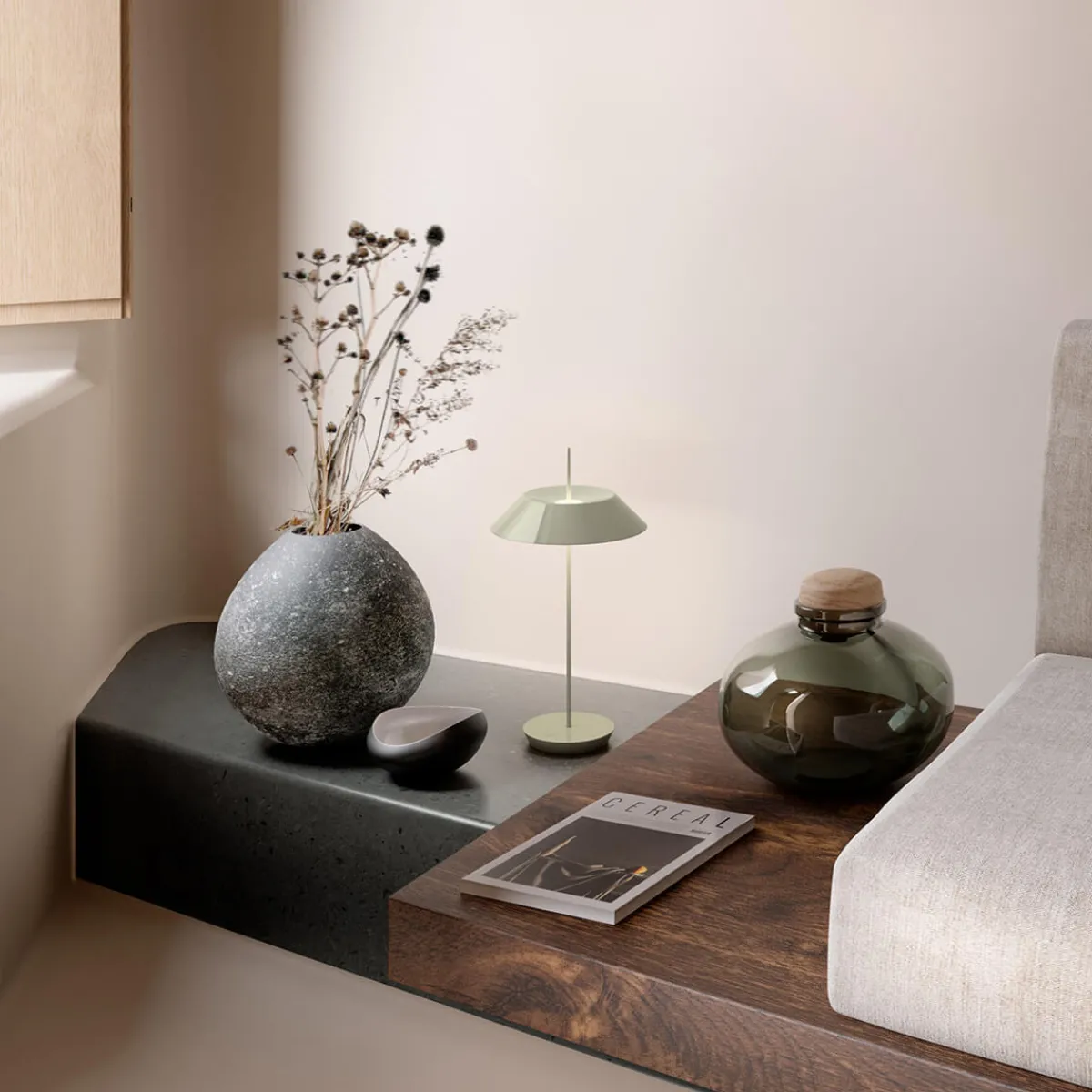 Die Mayfair Mini von Vibia, entworfen von Diego Fortunato, ist eine Hommage an die klassische Bouillotte- des 19. Jahrhunderts, neu interpretiert für den modernen Gebrauch. Die kabellose Tischleuchte kombiniert eine modische Farbpalette mit einer überraschend klaren, skulpturalen Form, die Eleganz und Ausgewogenheit ausstrahlt. Trotz ihrer kleinen Größe ist die Mayfair Mini eine mit beeindruckender Persönlichkeit.