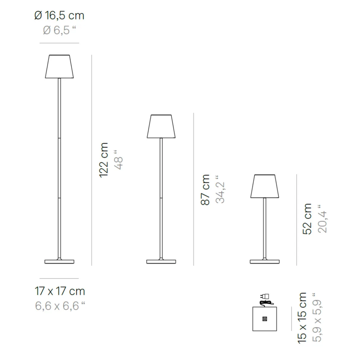 Flexibilität pur! Die Zafferano Poldina L Pro kann sowohl als Tisch- wie auch Stehlampe verwendet werden. Möglich macht dies ihr Leuchtenschaft, der aus drei separaten Stäben zusammengeschraubt wird. Je nachdem, welche Höhe die Poldina L erreichen soll, verwenden Sie nur einen Stab oder aber alle drei, um die auf maximale 122 cm anwachsen zu lassen.