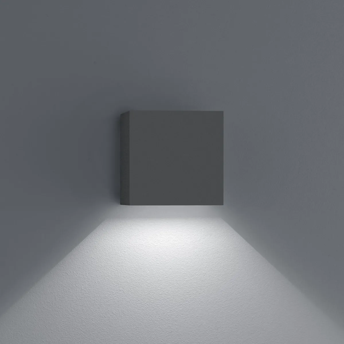 Die Außenwandlampe ist mit zwei verstellbaren Blenden ausgestattet, über die sich Up- & Downlight verstellen lassen. Bitte beachten Sie, dass Direkt- und Indirektlicht nicht unabhängig voneinander reguliert werden können. Es kann stets nur einer der beiden Lichtausrichtungen gebündelt bzw. breiter ausfallen. Stehen die Blenden parallel zueinander, ergibt sich ein gleichmäßig breiter Lichtaustritt nach oben und unten.