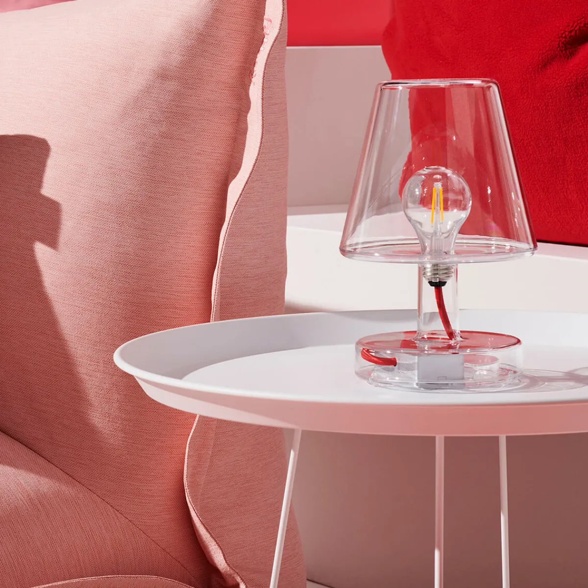 Die Transloetje ist in jedem Ambiente ein echtes Highlight. Verfügbar in verschiedenen attraktiven Farben, avanciert sie zweifellos zum Mittelpunkt der Aufmerksamkeit, sei es auf dem Nachttisch oder in der Mitte Ihres Wohnzimmertisches. Ihr Körper aus robustem Polycarbonat verleiht der Langlebigkeit, während ihre wiederaufladbare Natur Ihnen die Freiheit gibt, sie nach Belieben zu positionieren, ohne sich über Kabelsalat Sorgen machen zu müssen.