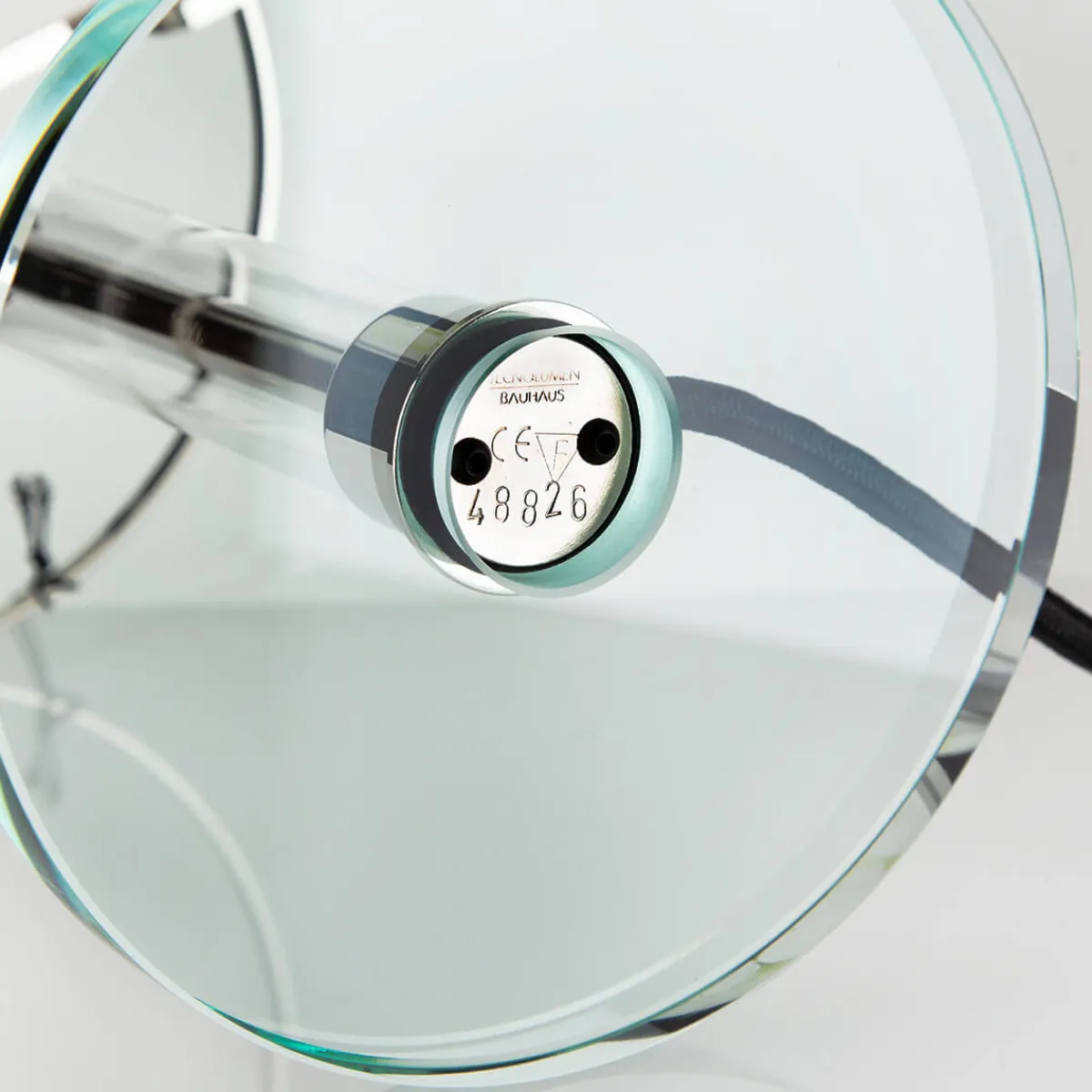 Die Wagenfeld WG 24 wird exklusiv von Tecnolumen hergestellt, dem einzigen Hersteller, der von Wilhelm Wagenfeld autorisiert wurde, diese Tischlampe nach den originalen Maßen und Materialien zu produzieren. Jedes Exemplar ist nummeriert und trägt die Prägungen von Bauhaus und Tecnolumen, die ihre Echtheit garantieren. Die Liebe zum Detail zeigt sich auch in den typischen Merkmalen wie der schwarzen, textilummantelten Zuleitung, dem kleinen vernickelten Külgelchen an der Zugschnur und der charakteristischen Tülle an der Lampenfassung.