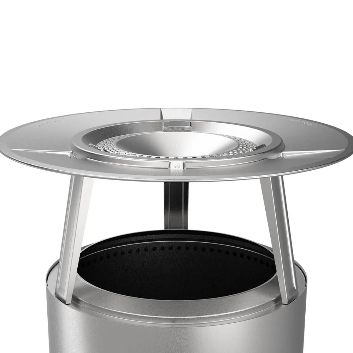 Der Wärmeverteiler, ebenfalls Bestandteil des Yukon Komplett-Sets, erweitert den Wärmeradius Ihrer Feuerschale und sorgt auch an kühleren Tagen für wohlige Wärme. Der stabile Standfuß garantiert einen sicheren Stand und schützt empfindliche Untergründe wie Holzterrassen oder Gras vor Hitzeschäden.