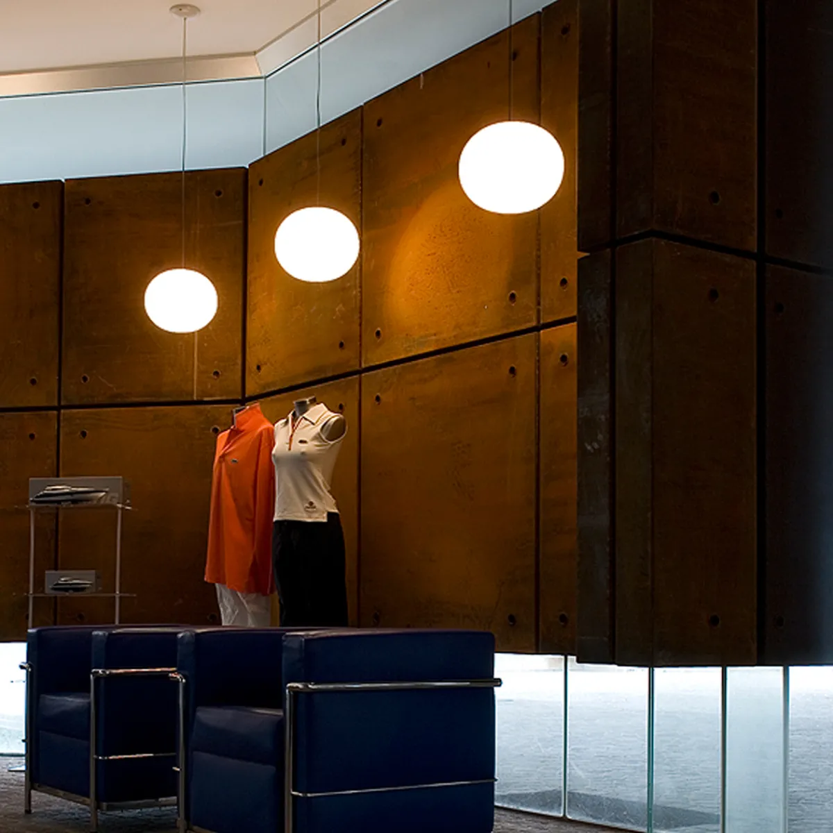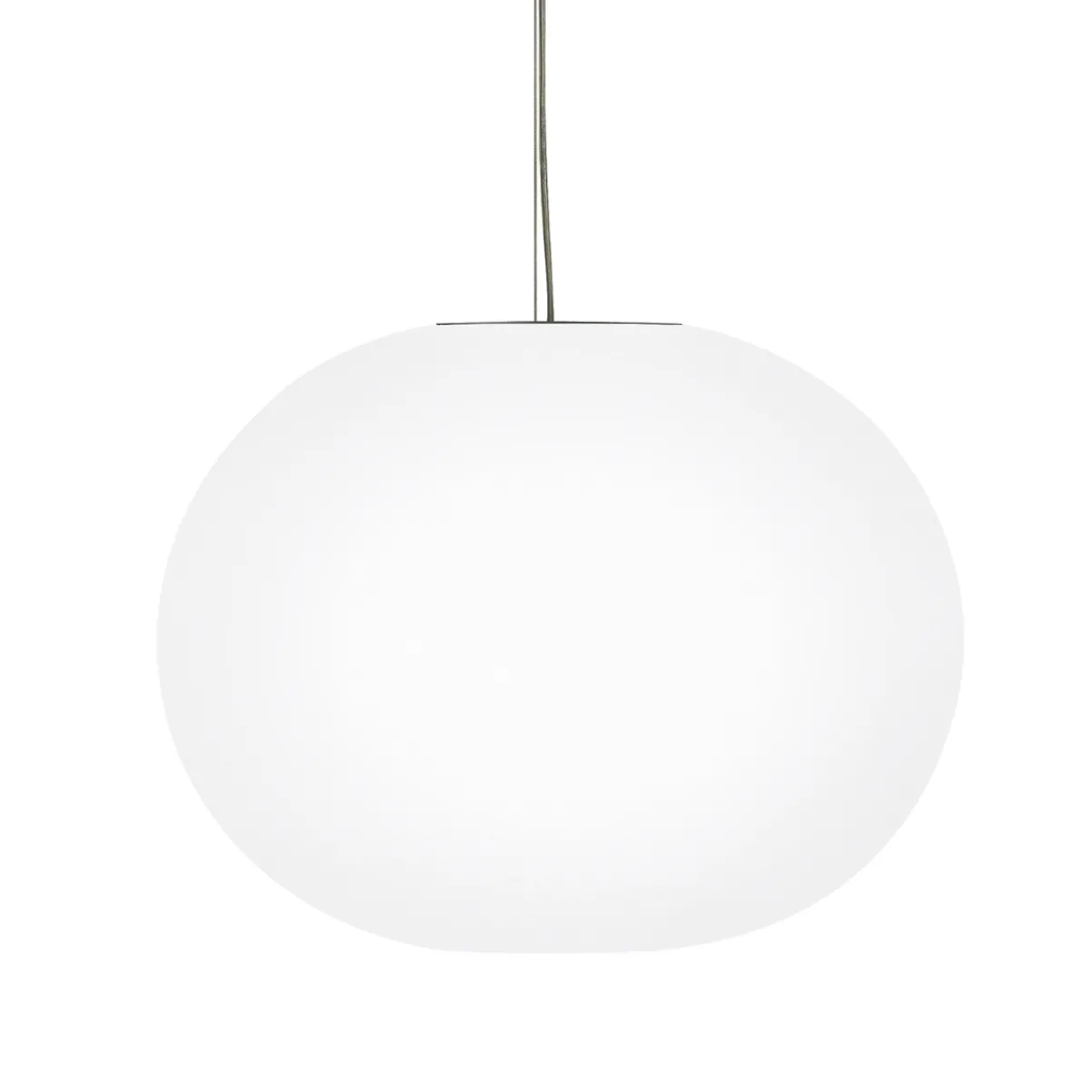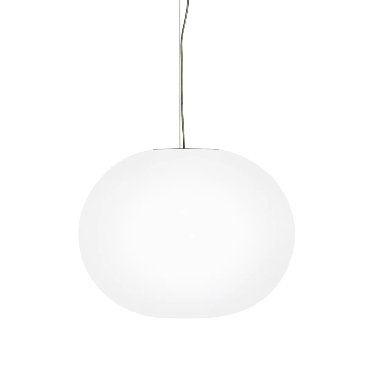 - Abgerundete Pendelleuchte aus mundgeblasenem, opalweißem Glas