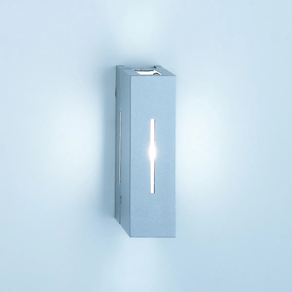 - Quaderförmige Wandlampe in metallischgrauer Lackierung
