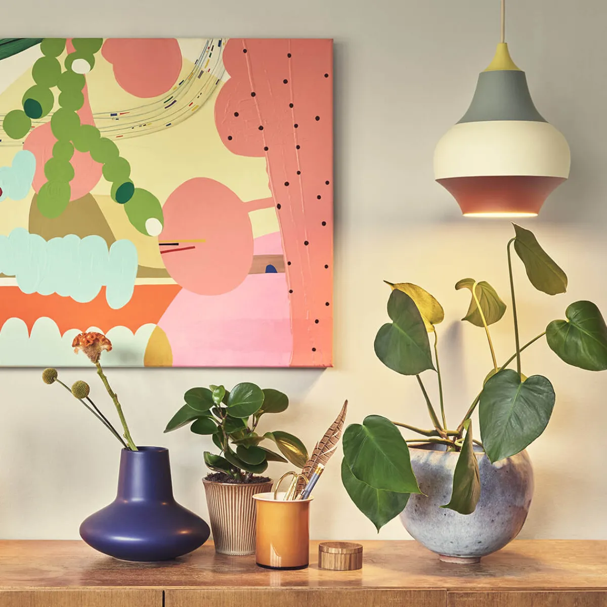 - Formschöne Pendelleuchte in farbenfrohem Design