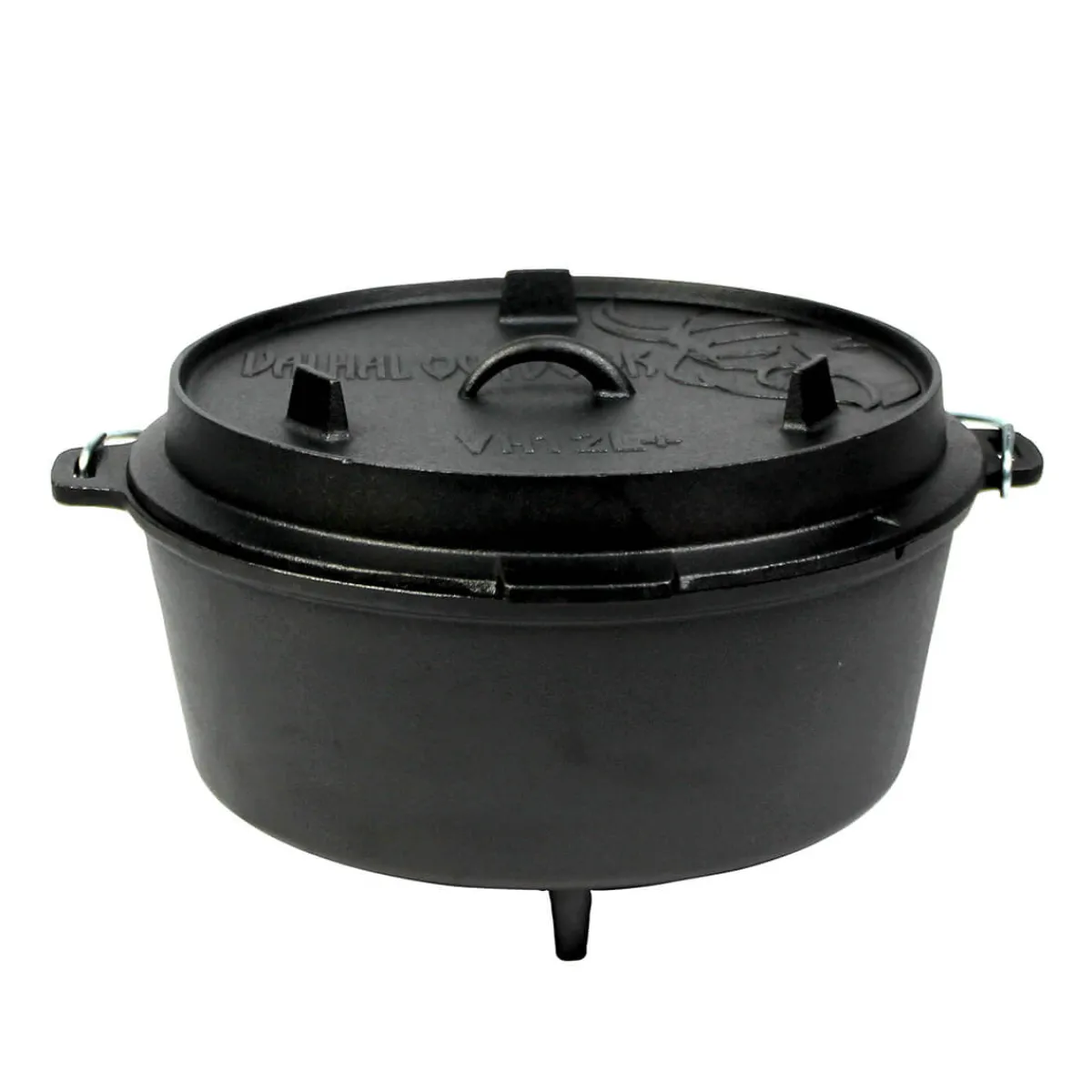 Der Valhal Outdoor Feuertopf 12L verspricht ein genussvolles Kocherlebnis daheim wie auch im Freien. Gusseisen ist für seine hervorragende Wärmeleitfähigkeit bekannt, weshalb der Topf für sämtliche Hitzequellen geeignet ist. Platzieren Sie ihn auf dem Grill, im Ofen oder in der Glut, um ihn zu befeuern. Dank seiner Standfüße kann er unmittelbar auf die Holzkohle oder Briketts gestellt werden, ohne die Hitze zu ersticken. Da der Topf außerdem über einen Henkel verfügt, lässt er sich auch über das offene Feuer hängen.