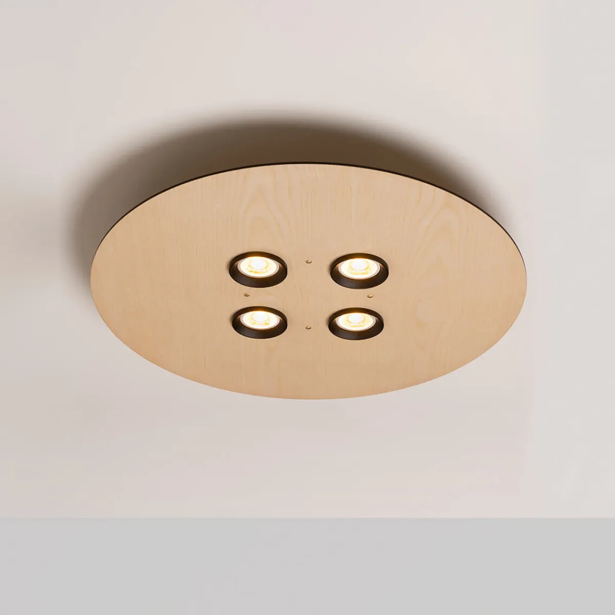- Runde Deckenleuchte aus Eschenholz mit vier Strahlern