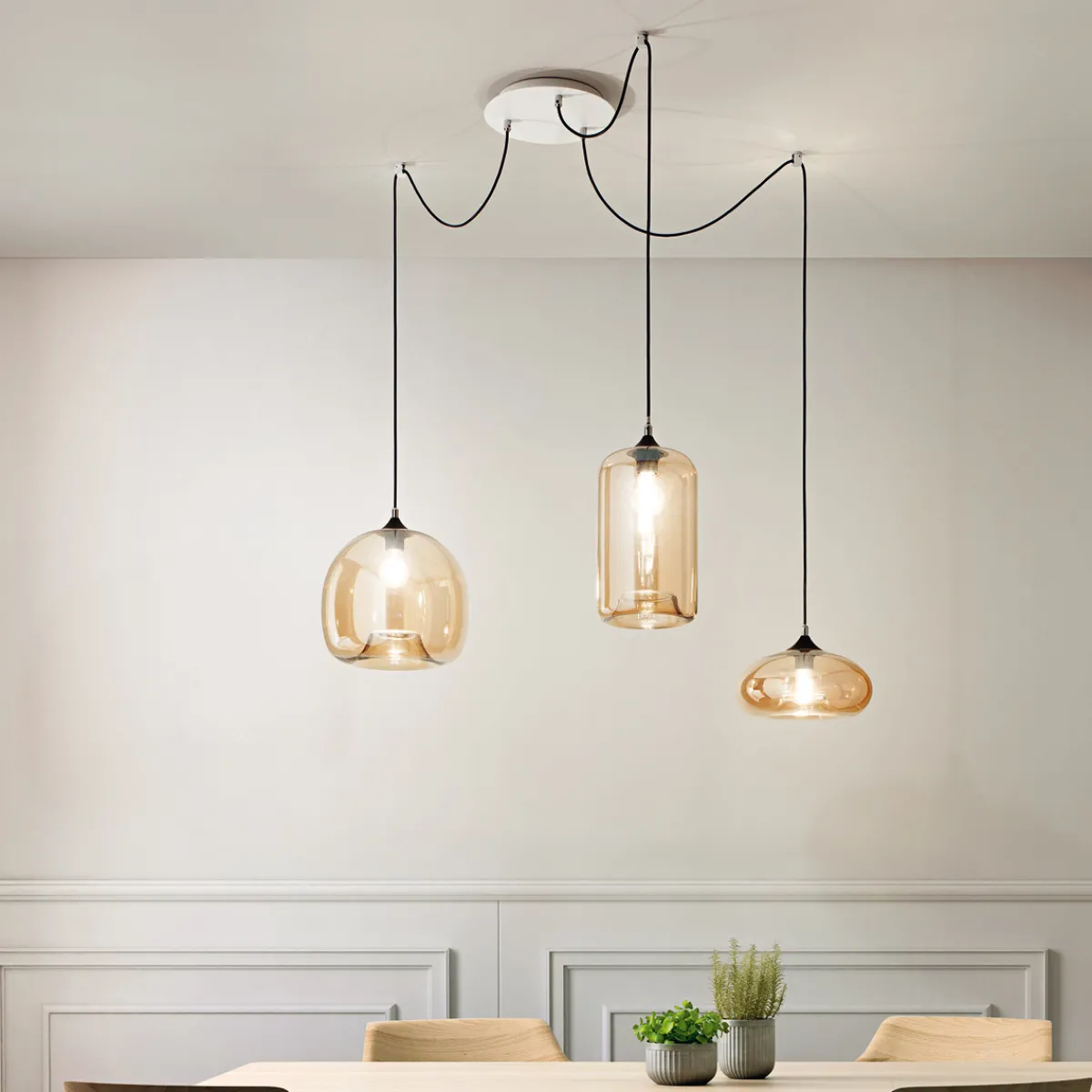 Die Lampenschirme der Fiona Pendelleuchte bestehen aus reinem, mundgeblasenem Glas. Kleine ästhetische Unregelmäßigkeiten wie vereinzelte Bläschen sind daher kein Qualitätsmangel, sondern der Beweis dafür, dass jede in Handarbeit hergestellt wird. Im Ergebnis kann es dazu führen, dass eine Seite des Glases schwerer ist als die andere und das Glas nicht gerade hängt. Um den Schirm entsprechend zu justieren, bitten wir Sie den Abstand zwischen Fassung und Glasloch zu verwenden.