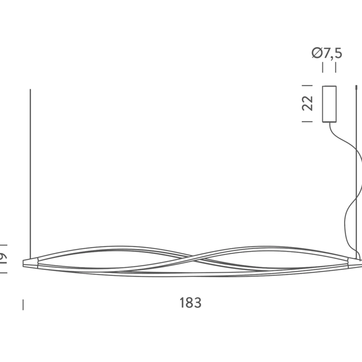 - Moderne Pendelleuchte aus drei elegant gewundenen Lichtstreben