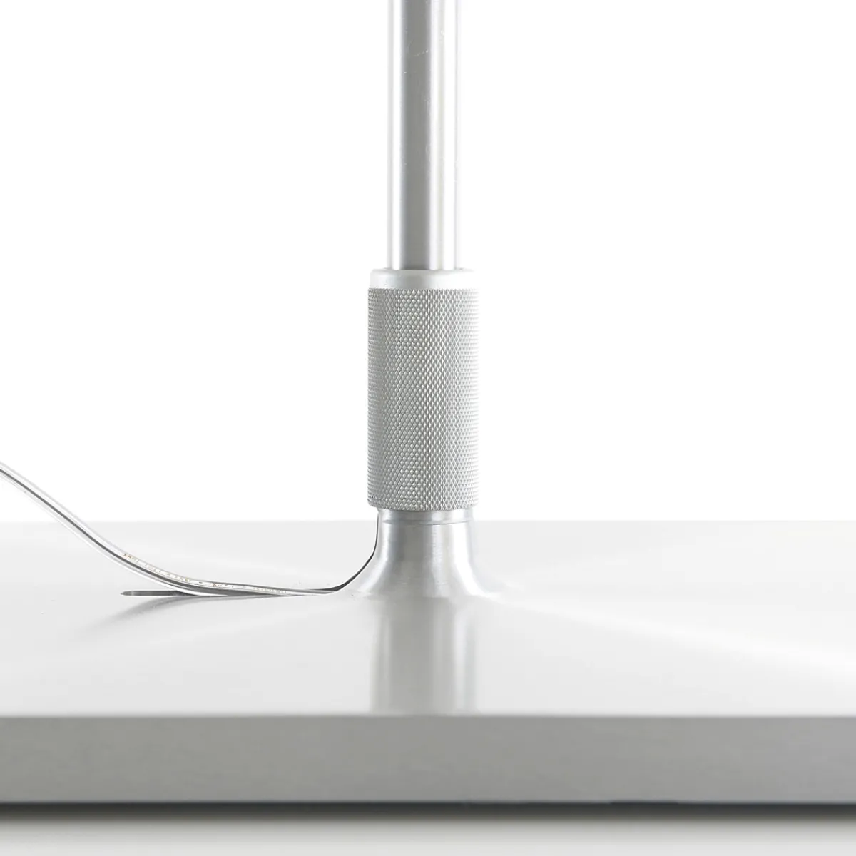 Das geringe Gewicht der filigranen Struktur und der praktische Griff nahe der Basis machen es hierbei ein Leichtes, die Position der Lady Costanza Terra nach Belieben zu verändern. Der höhenverstellbare Teleskopstiel, der sich an der Basis um bis zu 360° drehen lässt, verleiht der Bogenleuchte ein Höchstmaß an Flexibilität und erlaubt es, den Leuchtenschirm in die stets günstigste Position zu manövrieren.