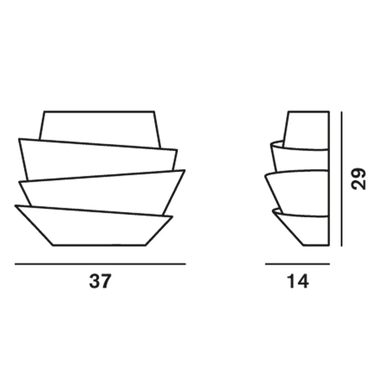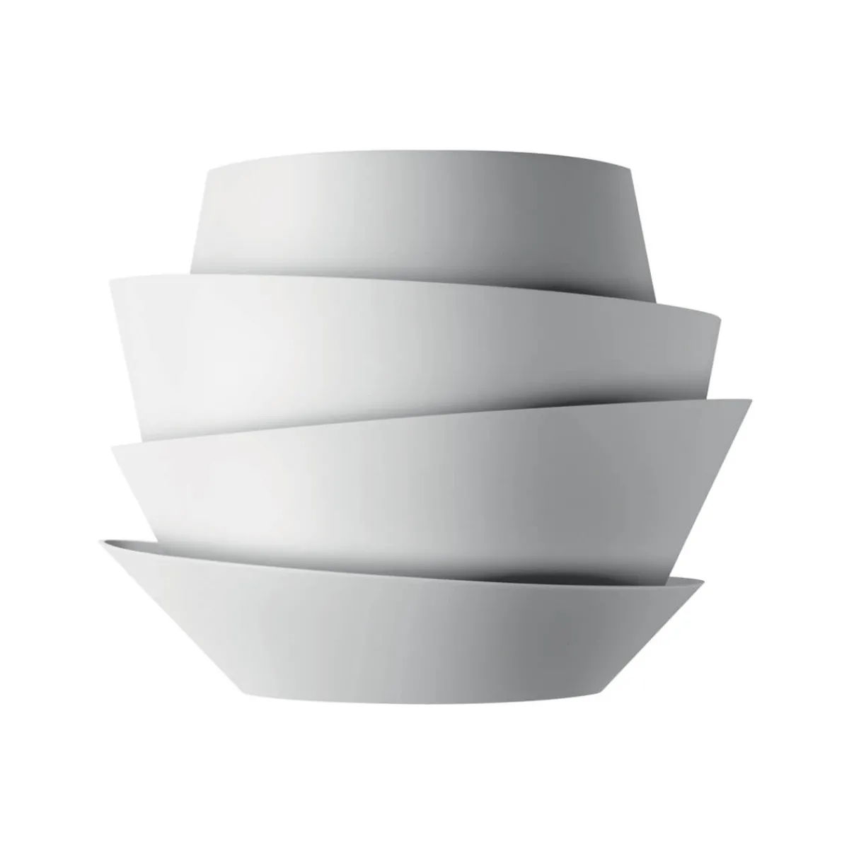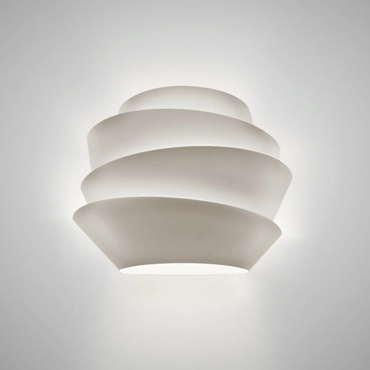 Ihre faszinierende Silhouette resultiert aus den übereinander geschichteten, lichtundurchlässigen und unregelmäßig geformten Bändern, aus denen der abgerundete Lampenschirm besteht. Indem diese das ausströmende Licht ins Innere des Leuchtenkörpers zurückwerfen, entsteht ein warmer und bezaubernder Schimmer im Raum. Gleichzeitig ermöglichen es die aus der Le Soleil Parete Wandleuchte nach oben und unten hin ausstrahlenden Lichtbündel, die Wandfläche in ein reizvolles Licht zu tauchen.