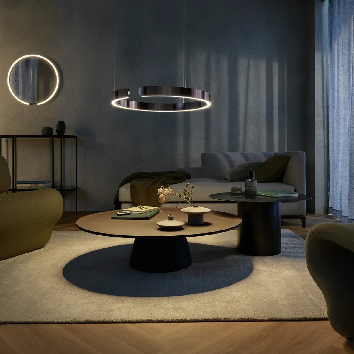 Pure Eleganz fürs Smart Home: Die Occhio Mito sospeso 60 var up „air“ wide LED lässt sich sowohl berührungslos via Gestensteuerung als auch über die integrierte Bluetooth-Steuerung regulieren. Das Ergebnis ist ein Höchstmaß an Bedienkomfort. Steuern Sie Lichtstärke, Lichtfarbe und das Verhältnis von Up- und Downlight bequem vom Sessel aus – mittels kostenfreier Occhio air App oder über den als Zubehör erhältlichen Occhio air Controller!