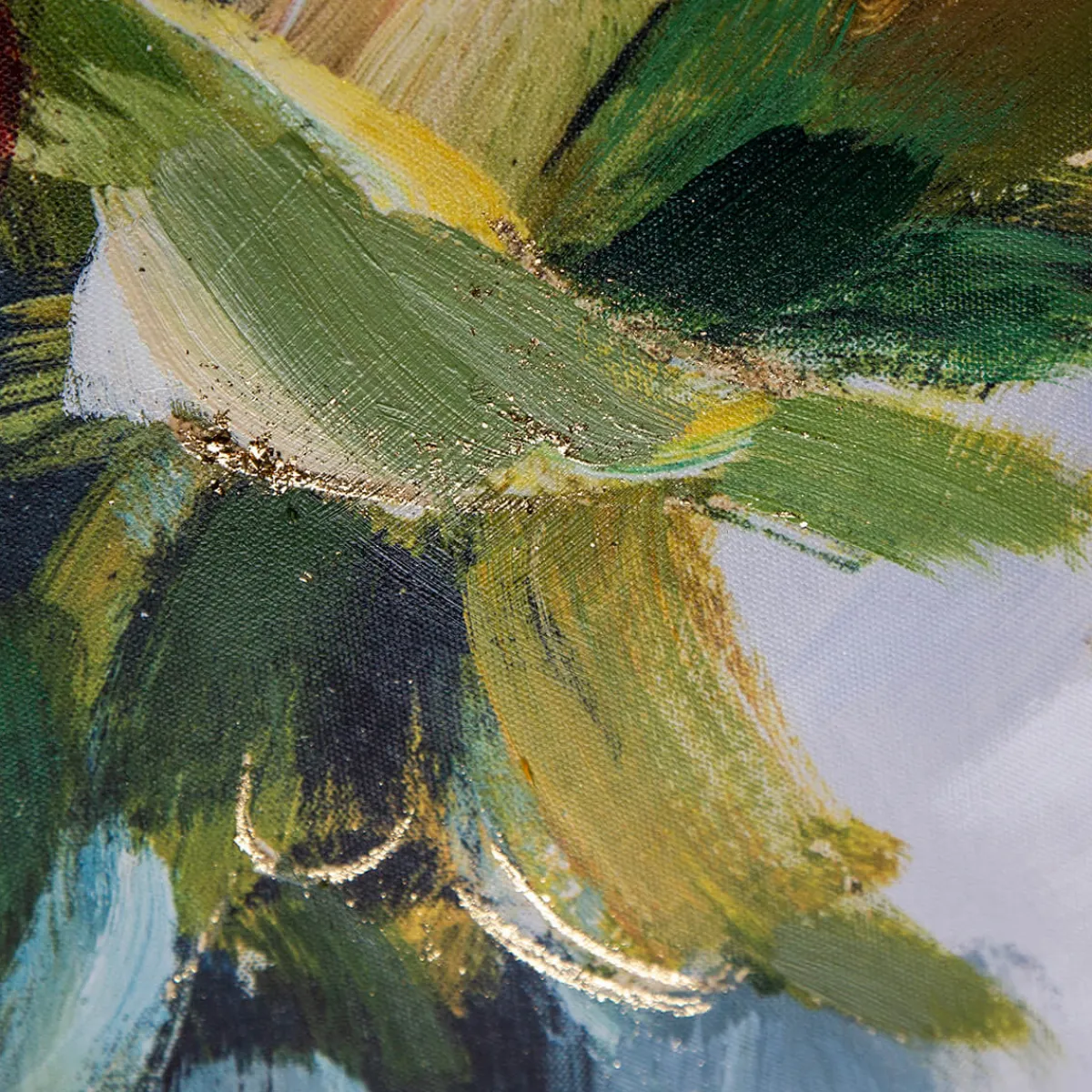 - Ölgemälde mit Pfingstrosen und goldfarbenen Akzenten