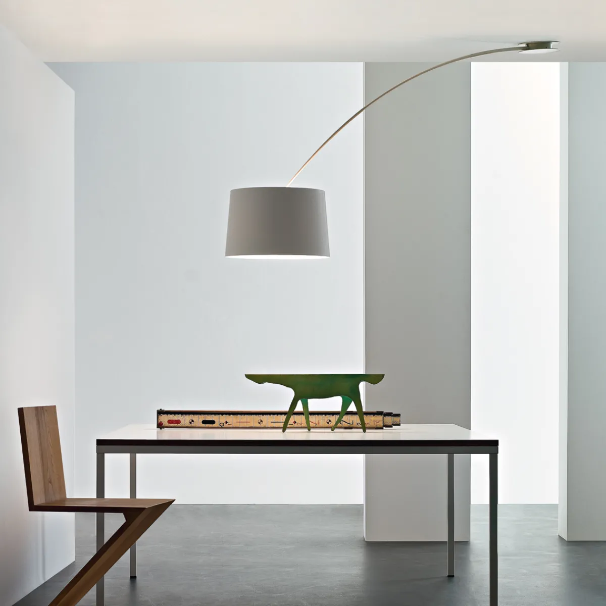 Die Twiggy Soffitto besticht durch ihre zarte und geschmeidige Linie, die sie zu einem harmonischen, ästhetisch reizvollen Bestandteil eines Innenraums macht. Ebenso wie ihr Leuchtenpendant, die Foscarini Twiggy Terra, zeichnet sich die Deckenleuchte durch einen sanft gebogenen Leuchtenarm und den für die Twiggy Leuchtenkollektion so charakteristischen breiten Schirm aus.