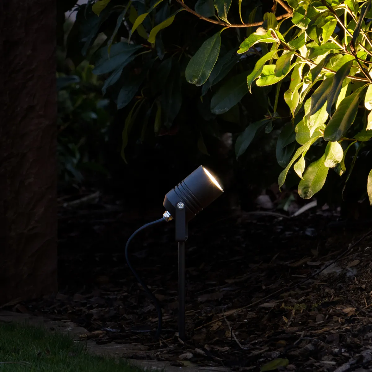 - Funktionaler Strahler mit Erdspieß für eine flexible Montage