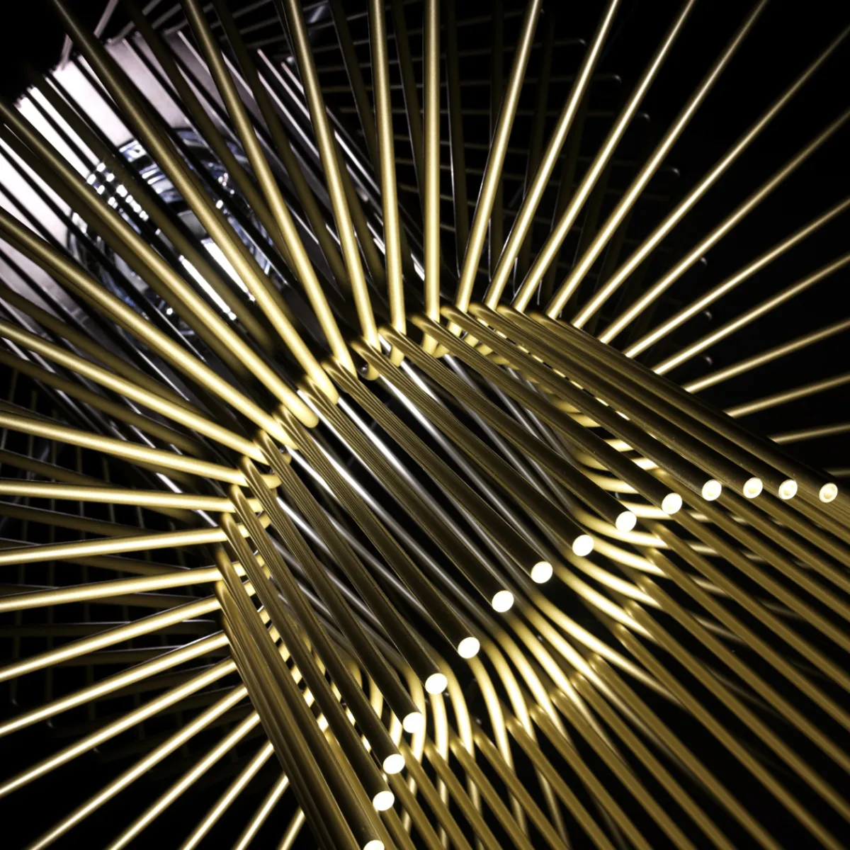 Darüber hinaus dienen sie der Erzeugung reizvoller Töne, die erklingen, sobald die frei im Raum schwebenden Aluminiumstangen aneinanderstoßen. Diesem Effekt verdanken die Allegro Sospensione Leuchten ihren Namen, bezeichnet das Wort „allegro“ innerhalb einer musikalischen Komposition doch ein schnelles und lebhaftes Tempo.