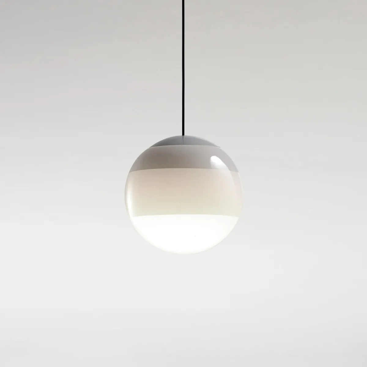 Trotz ihrer geringen Größe besitzt die Pendellampe alle charakteristischen Designelemente der Kollektion. Die mundgeblasene Glaskugel wird in einem präzisen Verfahren mehrfach in Farbe getaucht, wodurch ihr charakteristischer Farbverlauf mit sanften, konzentrischen Schichten entsteht. Diese Farbnuancen verleihen dem Licht eine besondere Tiefe und erzeugen eine stimmungsvolle, fast poetische Lichtwirkung.