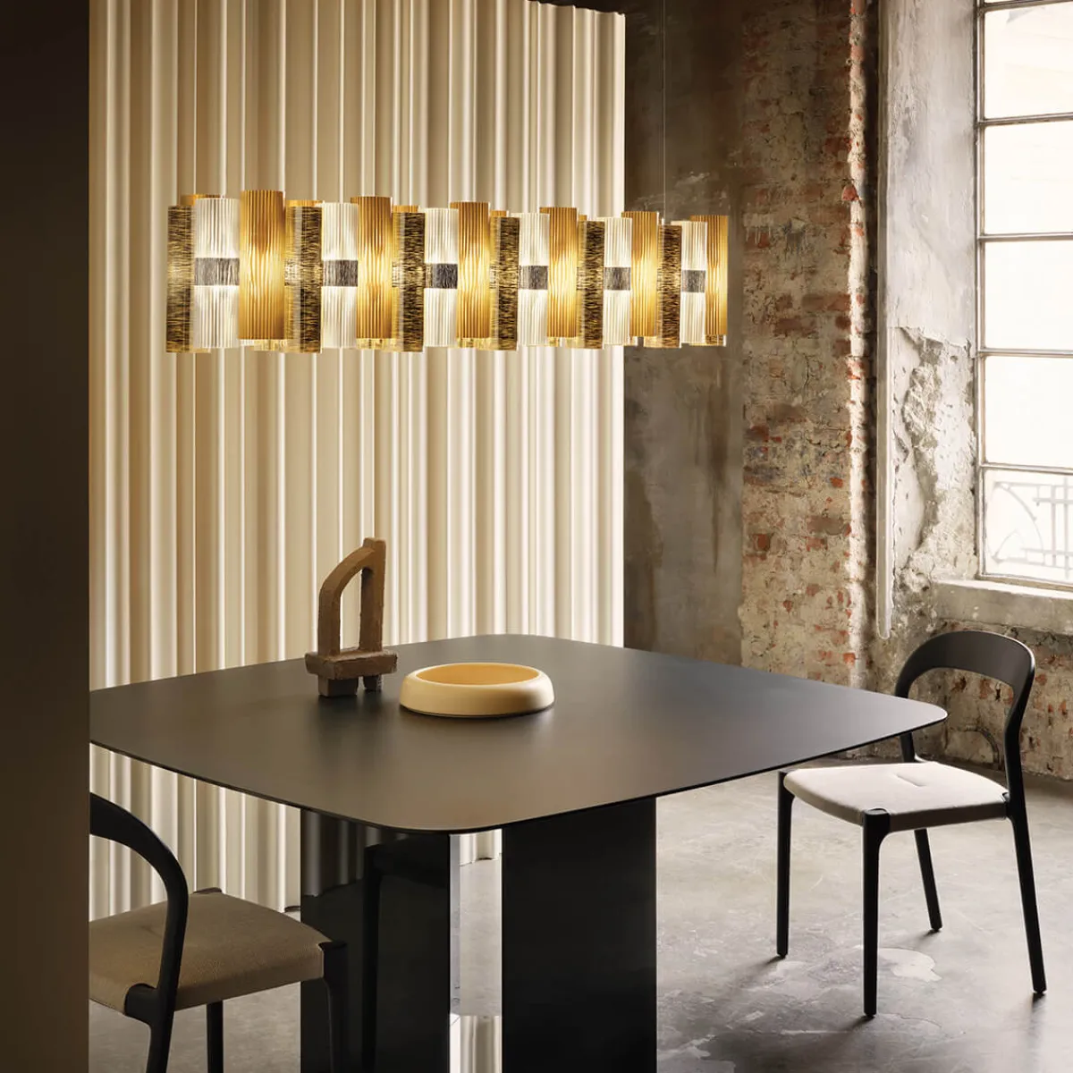 Mit ihrer eleganten Linienführung und den originellen Materialien steht die La Lollo Linear 140 exemplarisch für die Kreativität und Handwerklichkeit der Marke Slamp. Wesentliches Merkmal des Designs ist der Rippeneffekt der einzelnen Kunststoffröhren, der sich aus den aufwendig veredelten, handgeformten Technopolymeren Lentiflex® und Opalflex® speist. Das Ergebnis ist eine kunstvolle Lichtquelle, die sich durch ihre Vielseitigkeit und Brillanz auszeichnet.
