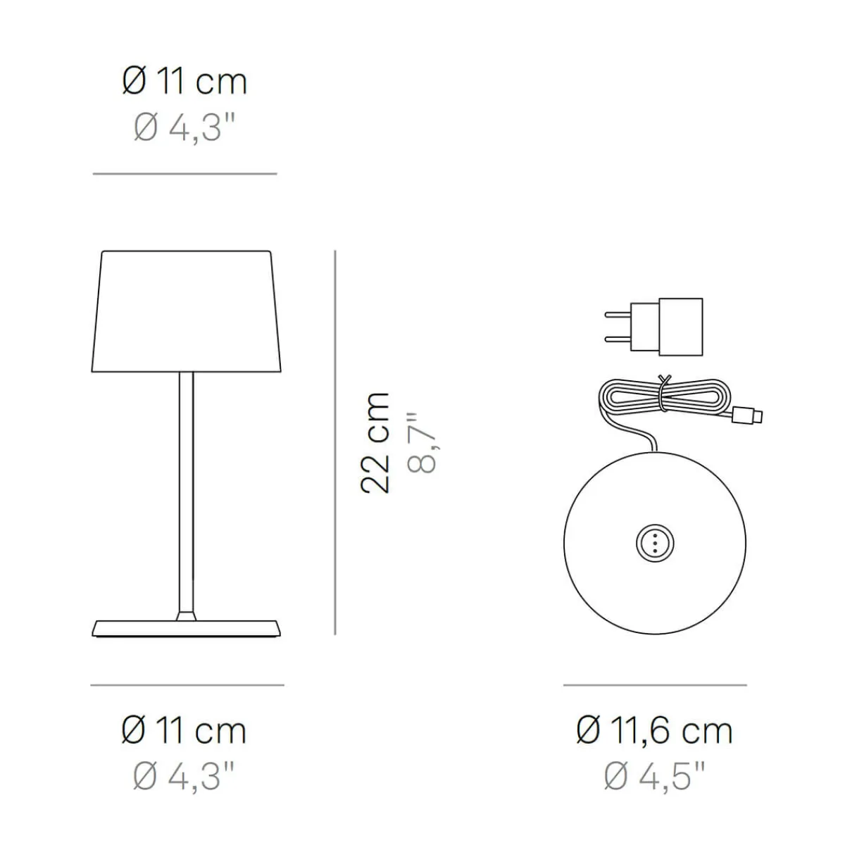 Schafft drinnen und draußen ein schönes Licht: Die tragbare Olivia Mini Pro LED Akkuleuchte ist mit einer Lithiumbatterie ausgestattet, die über die beiliegende Einzel-Kontaktladestation bequem wiederaufgeladen werden kann. Die funktioniert auch dann, wenn sie an die Ladestation angeschlossen ist. Alternativ lässt sich das Produkt mit einem zertifizierten Ladegerät mit max. 5V DC/1A mit Strom versorgen.