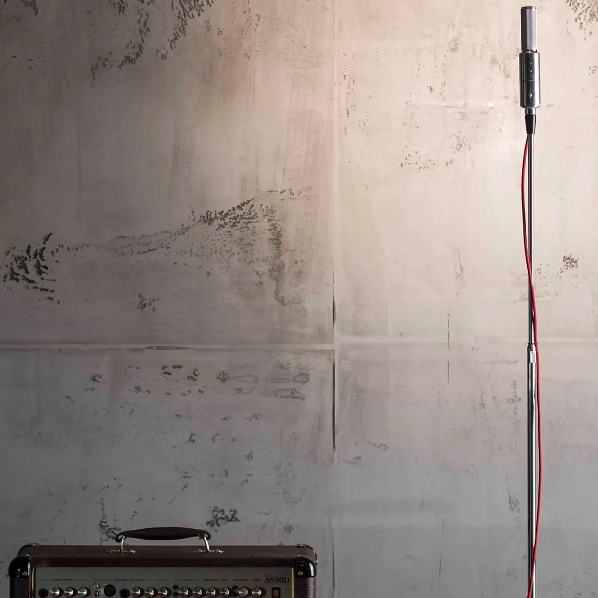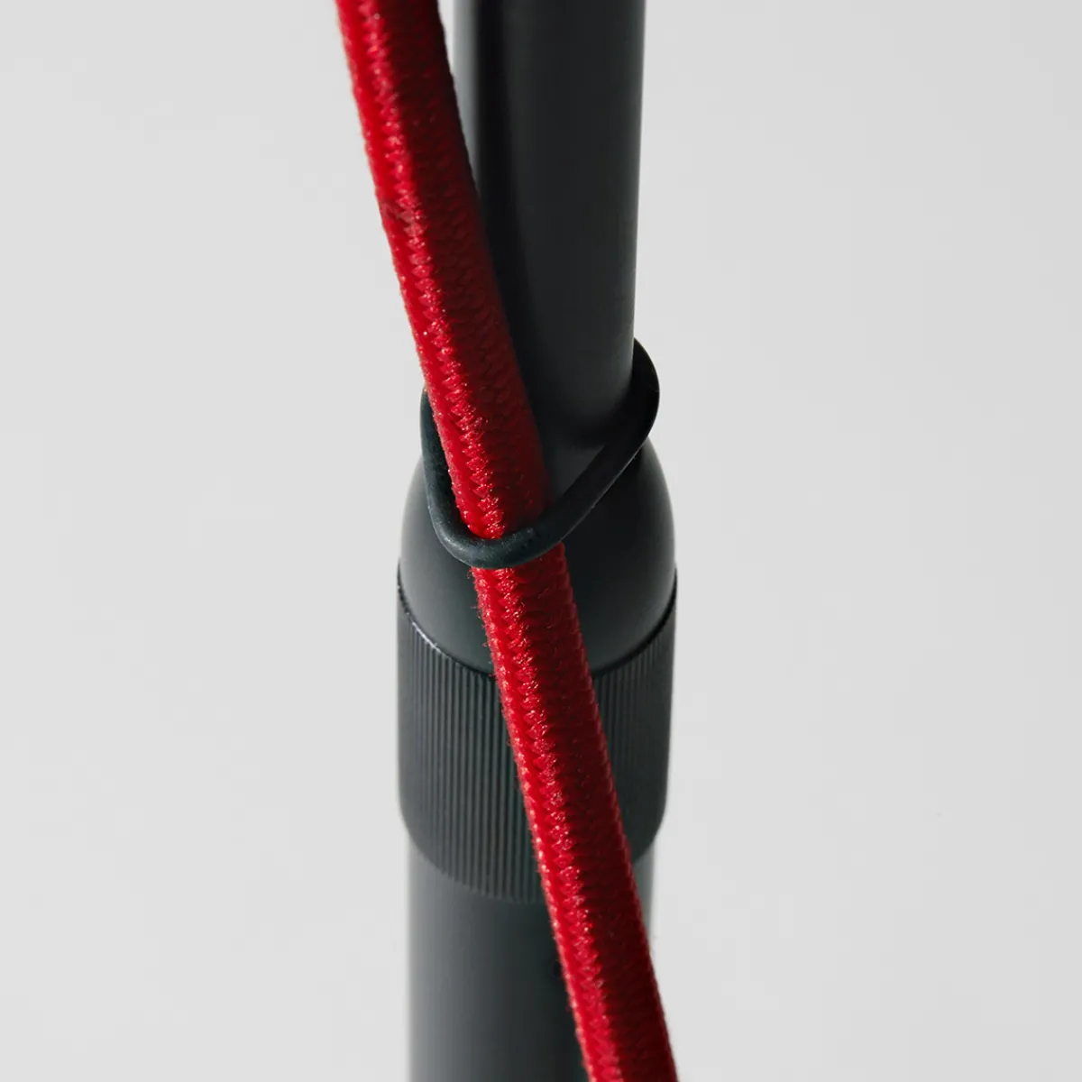 - Zuleitung mit rotem Textilüberzug und solider Standfuß aus poliertem Beton