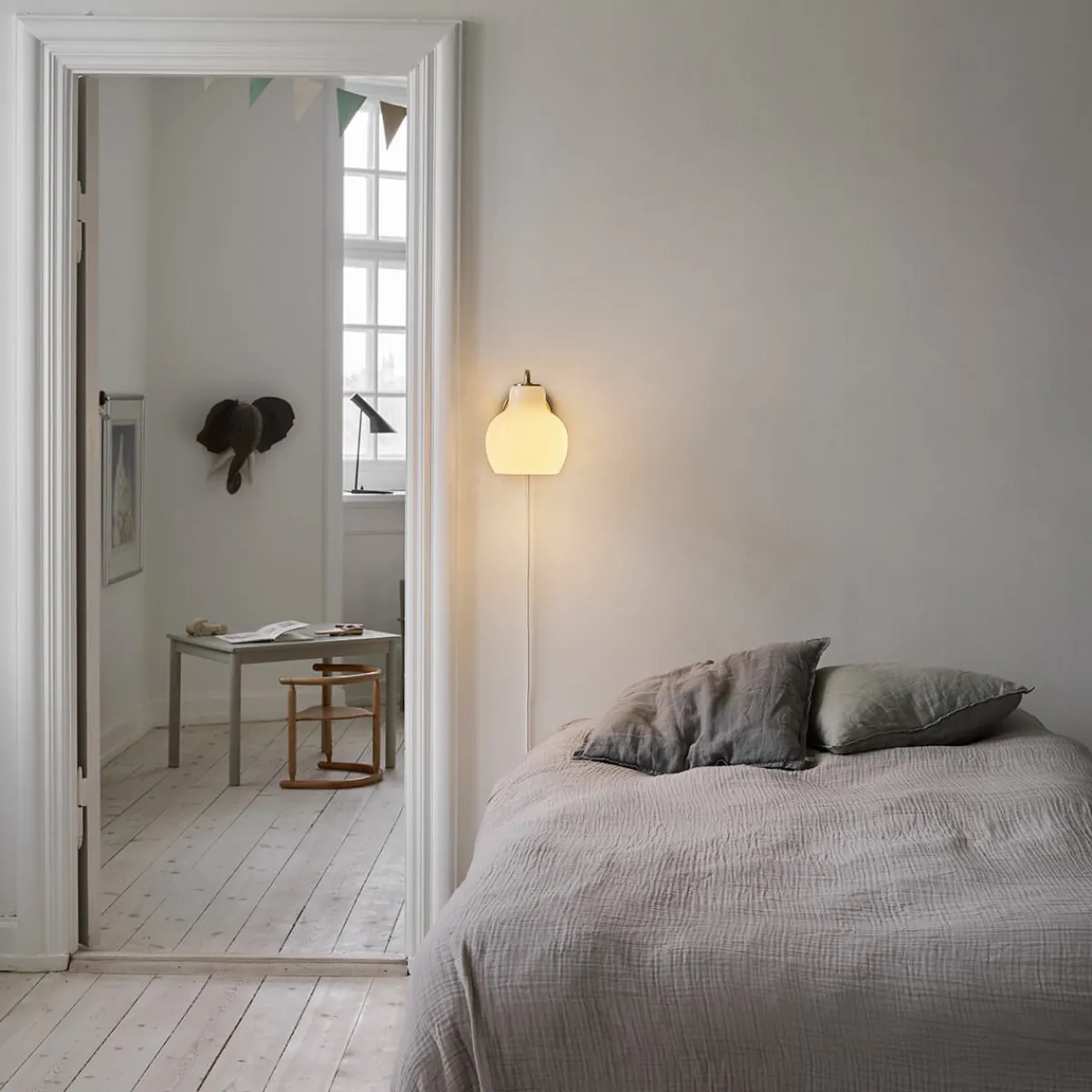 Die VL Ring Crown Wandleuchte gibt ihr Licht vorrangig nach unten ab und schafft eine gemütliche, gleichmäßige Beleuchtung. Sie eignet sich ideal für Durchgangsbereiche und Flure, setzt Akzente in Wohnzimmer und Küche und ist eine elegante Alternative zur klassischen Nachttischlampe im Schlafzimmer. Dank ihres weißen Textilkabels mit Stecker und einem Schalter an der Wanddose ist die Installation und Nutzug denkbar einfach.