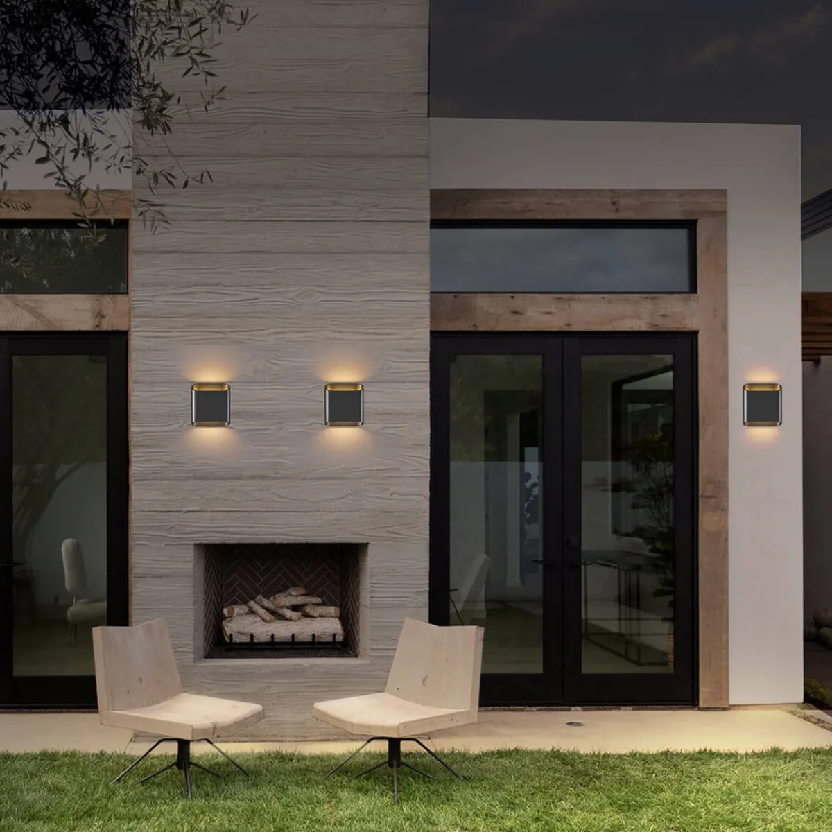 - Moderne Außenwandleuchte aus pulverbeschichtetem Aluminiumdruckguss mit zwei Diffusoren aus Lupenglas