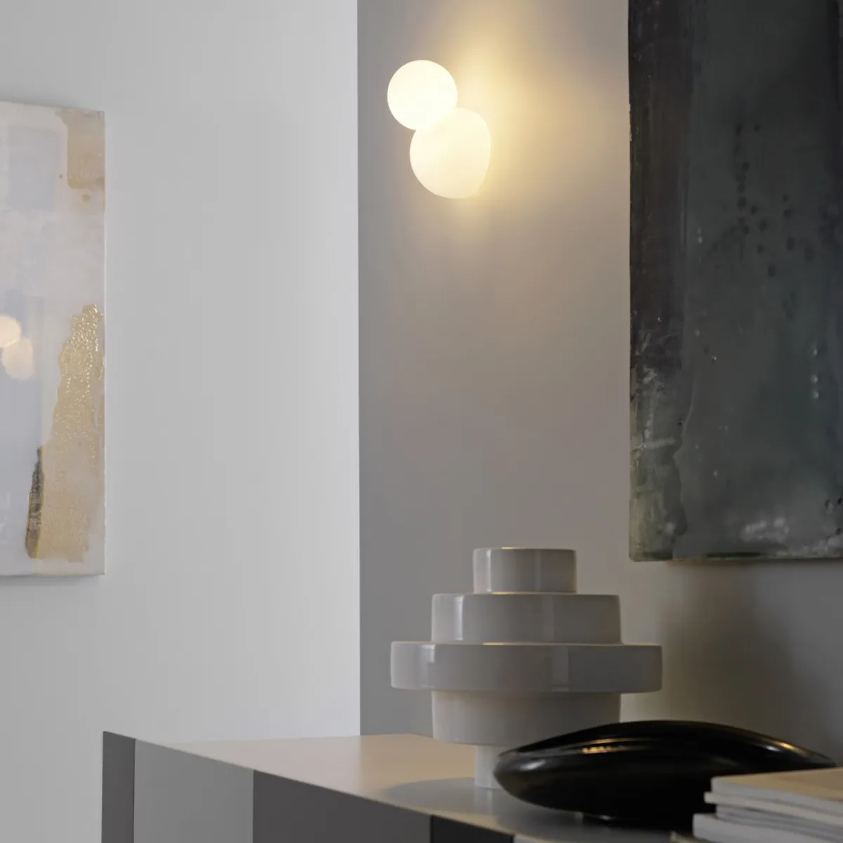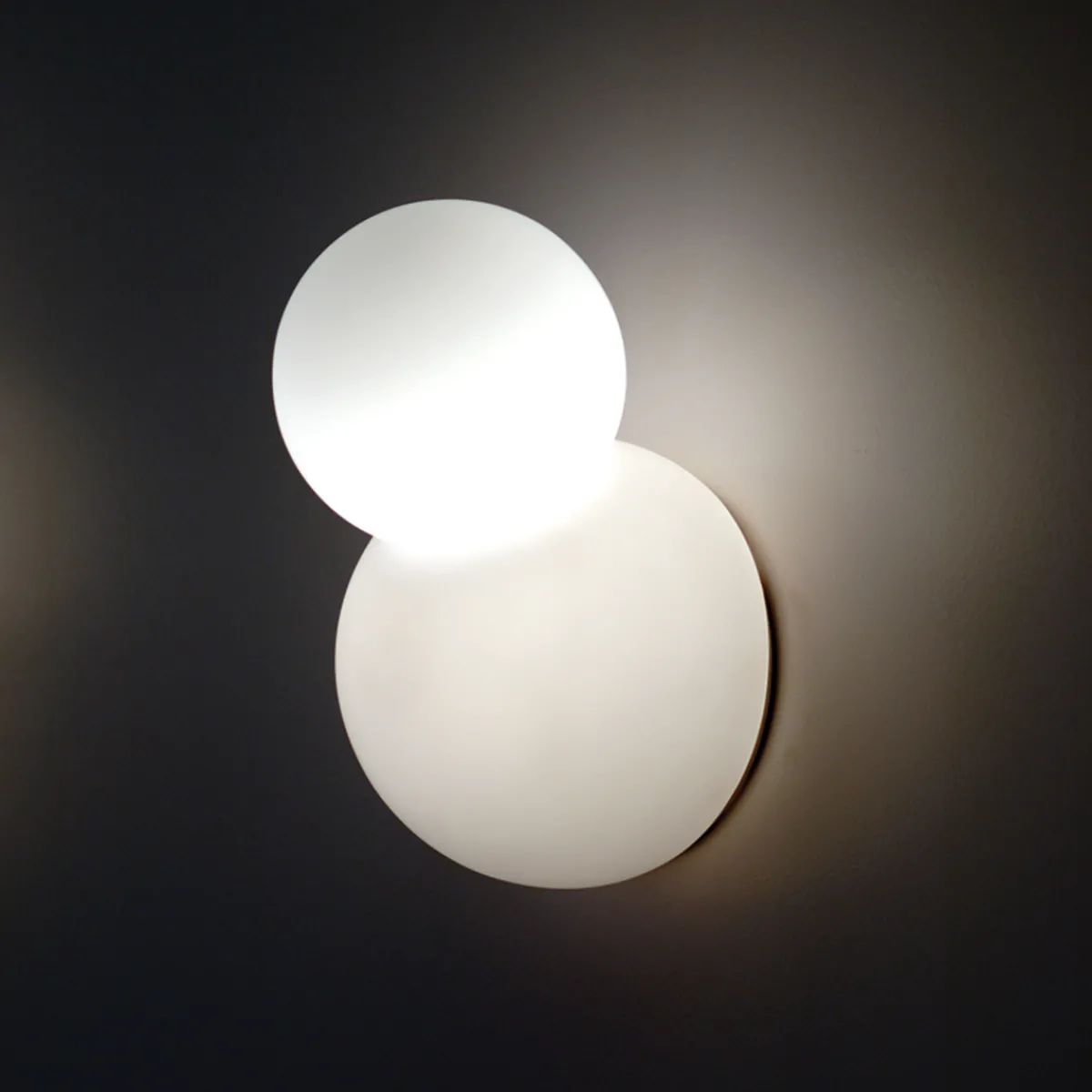 „Il Bruco“, die Raupe. Angesichts der außergewöhnlichen Form dieser gläsernen erscheint die Namensgebung nur allzu gerechtfertigt. So lassen die beiden kugelförmigen Schirme der Bruco tatsächlich an die abgerundeten Segmente einer Raupe denken. Doch während eine Schmetterlingsraupe ihre wahre Schönheit erst nach der Metamorphose offenbart, erstrahlt die Bruco Wandleuchte bereits jetzt in einem schönen Licht.